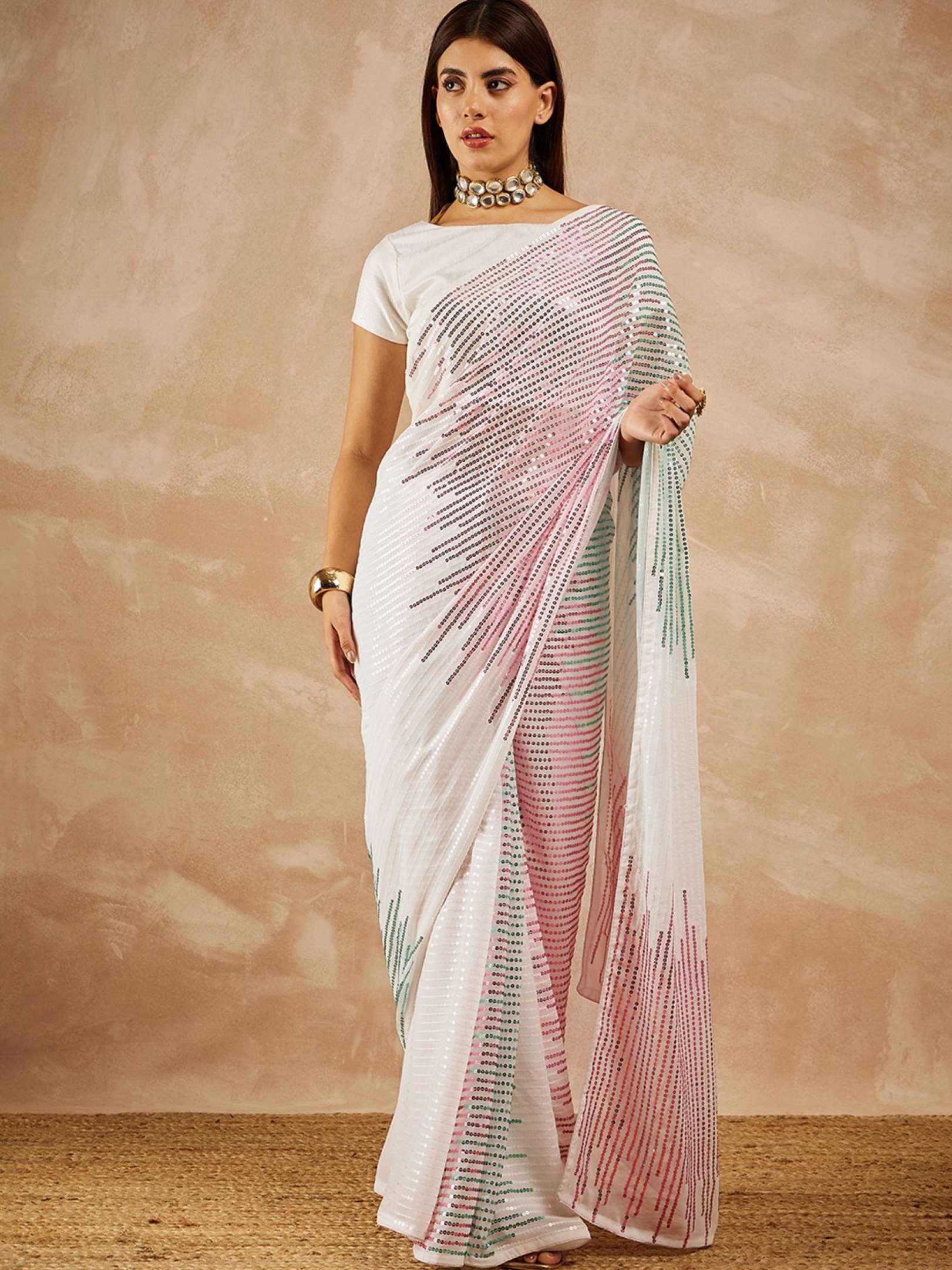 Mohvogue Roozal Sequence Georgette Party Wear Sarees