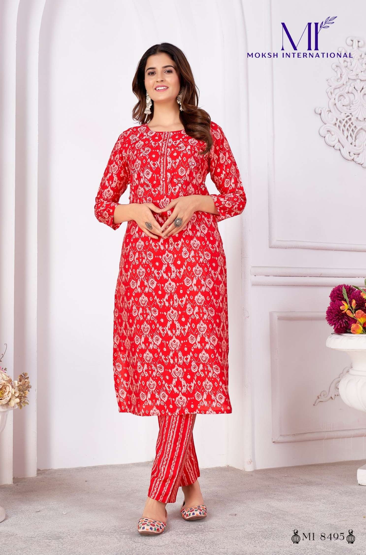 Moksh International Printed Royal Silk Kurti Pent