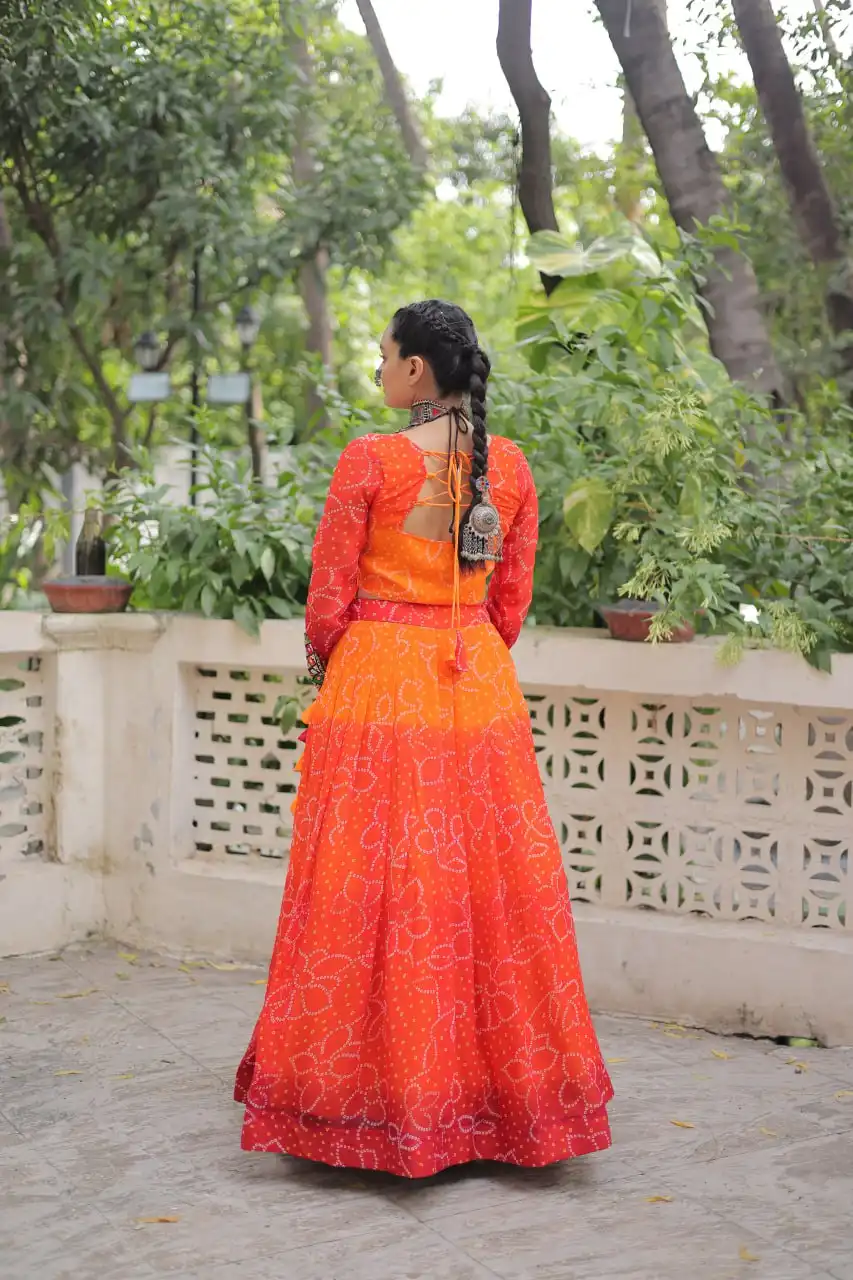 Moni 5049 Georgette Bandhani Printed Navratri Skirt Top Collection |