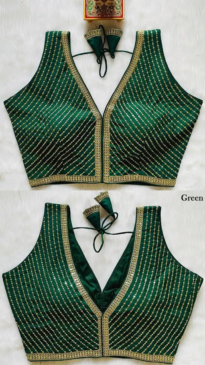Blouse: Roman silk | Sleeves : 11 inches inside included with embroidery work | Sequins work and Thread Embroidery | Hook pattern: Backhook