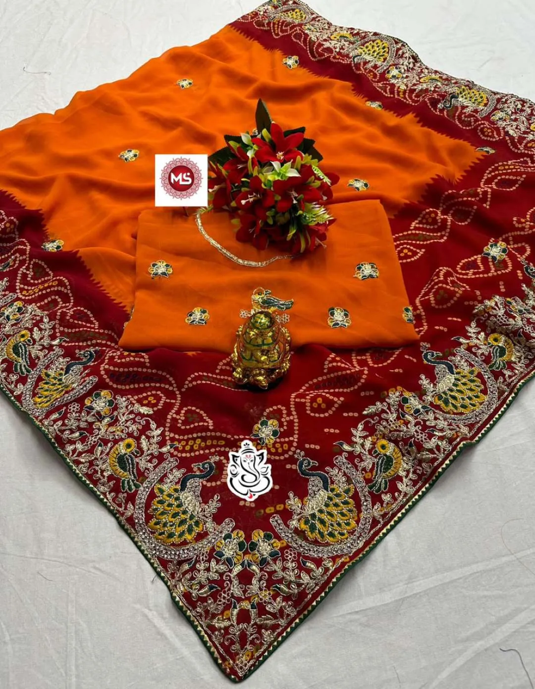 Ms Georgette Bandhani Printed Saree Design Collection