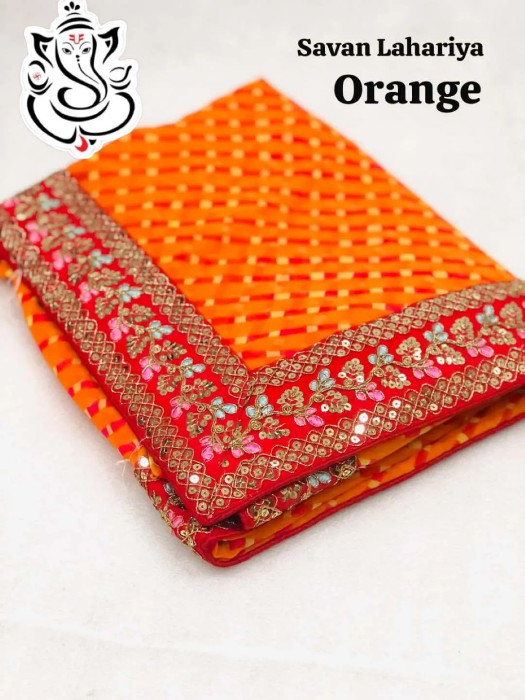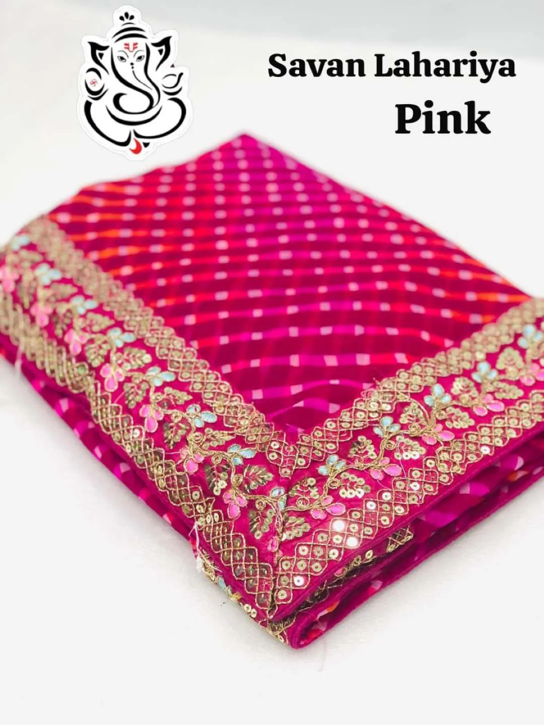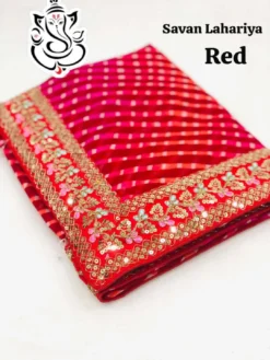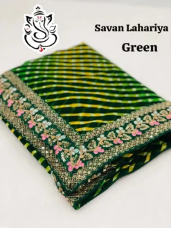Ms Georgette Lahariya Saree With Embroidery Lace Border