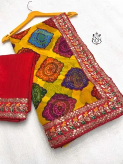 Ms Soft Georgette Bandhej Print Saree Multi lace Work