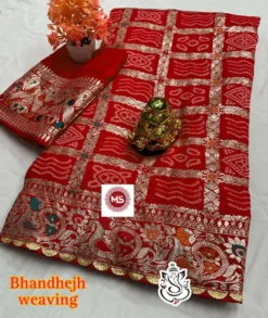 Ms Viscose Meenakali Bandhej Saree With Weaving Work