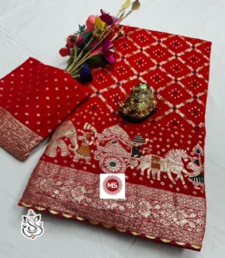 Ms Wedding Banarasi Dola Silk Saree With Hanthi Work