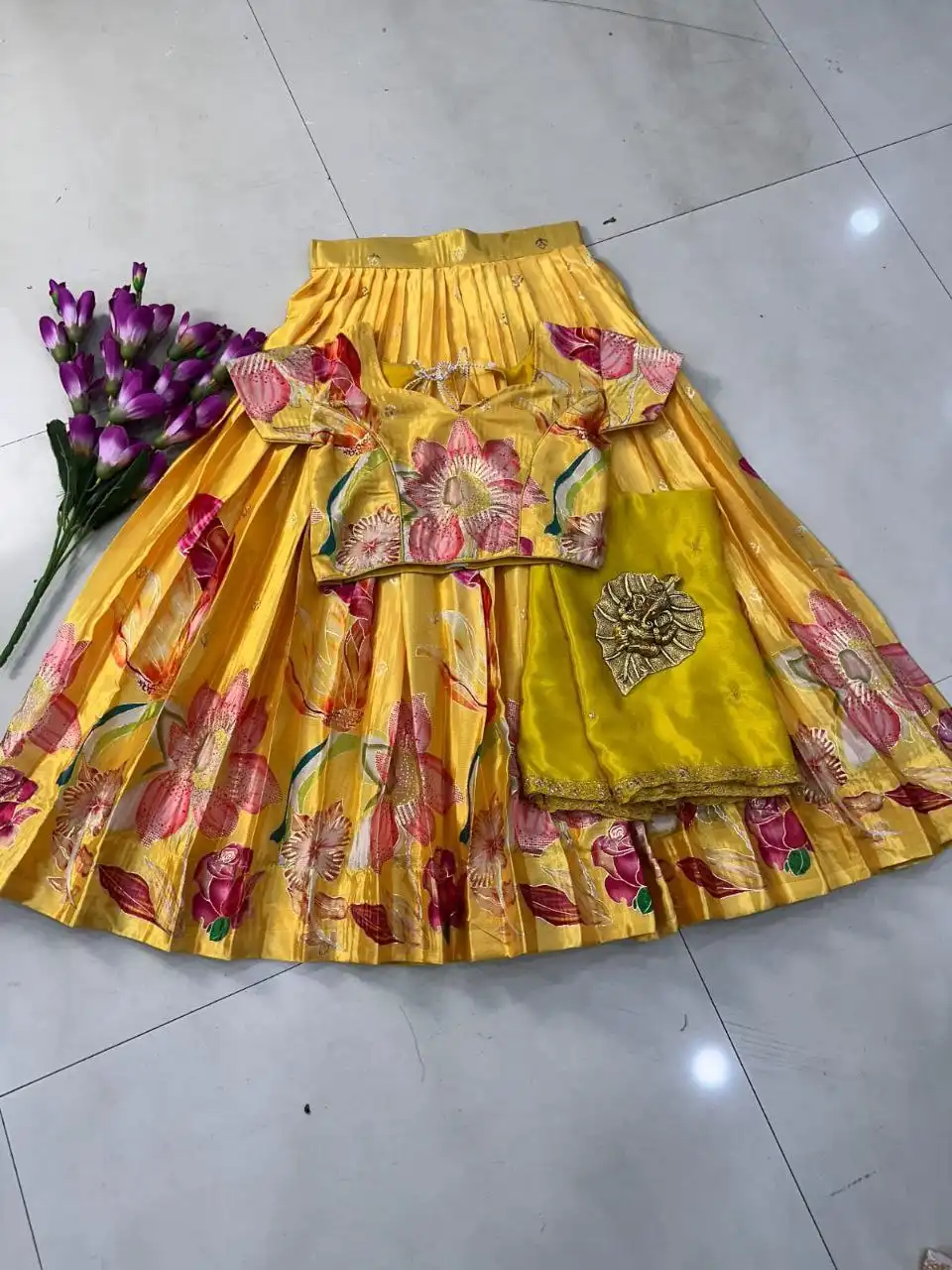 Lehanga: Full stitched pure silk with falir 3 mtr and heavy digital position foil same as pic and video
