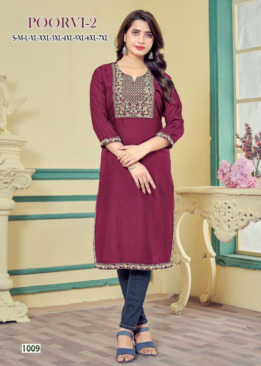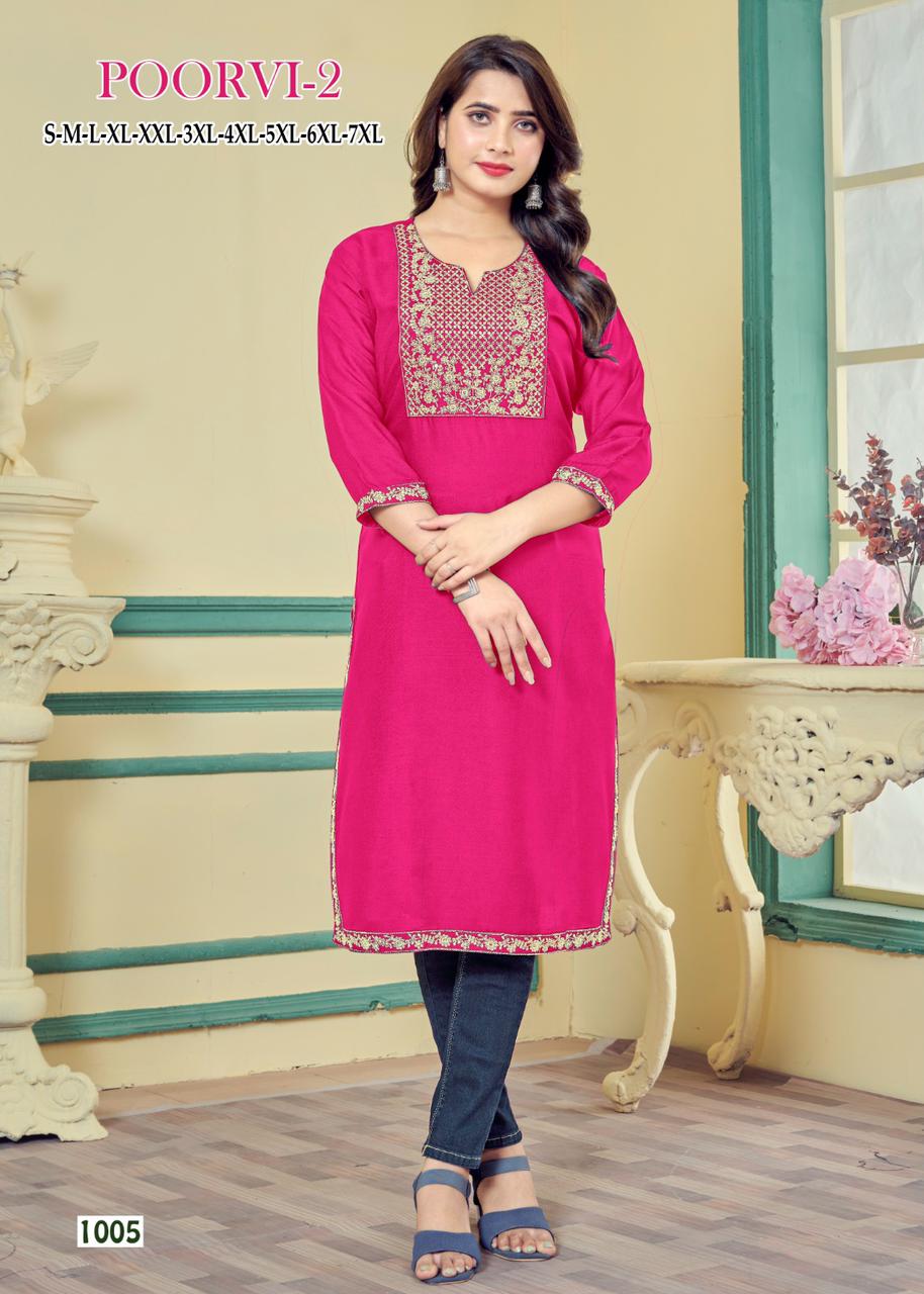 Poorvi 2 Regular Wear Rayon Kurti Collection