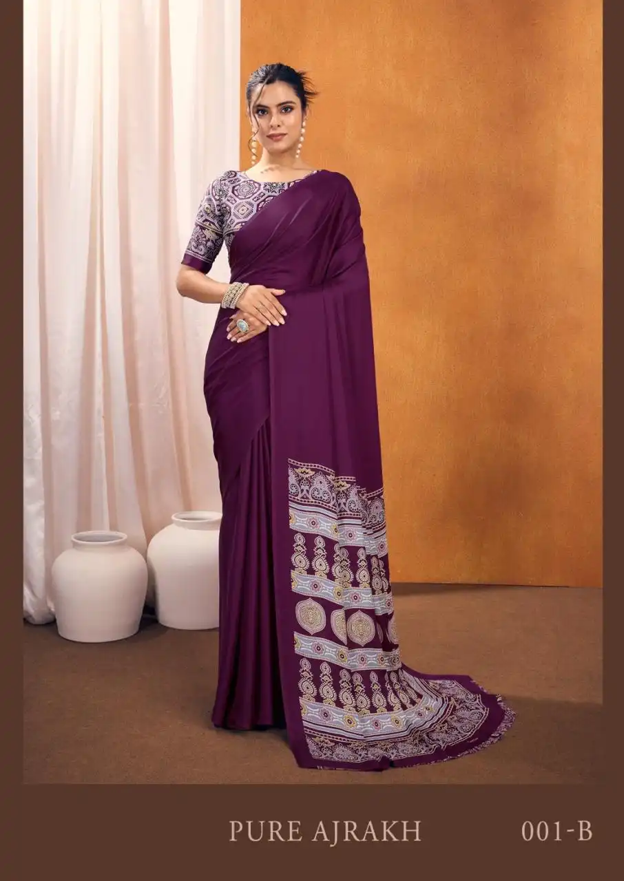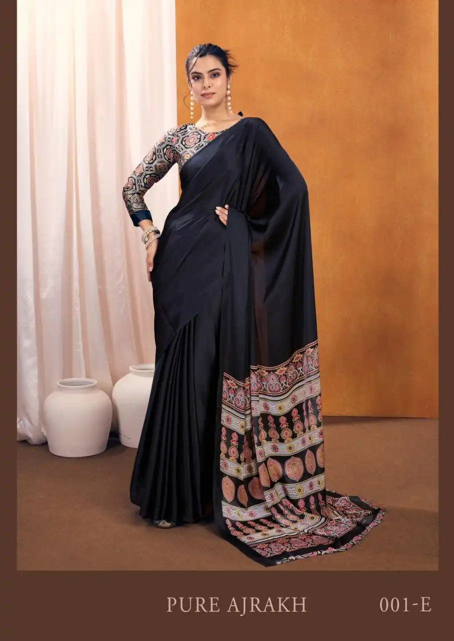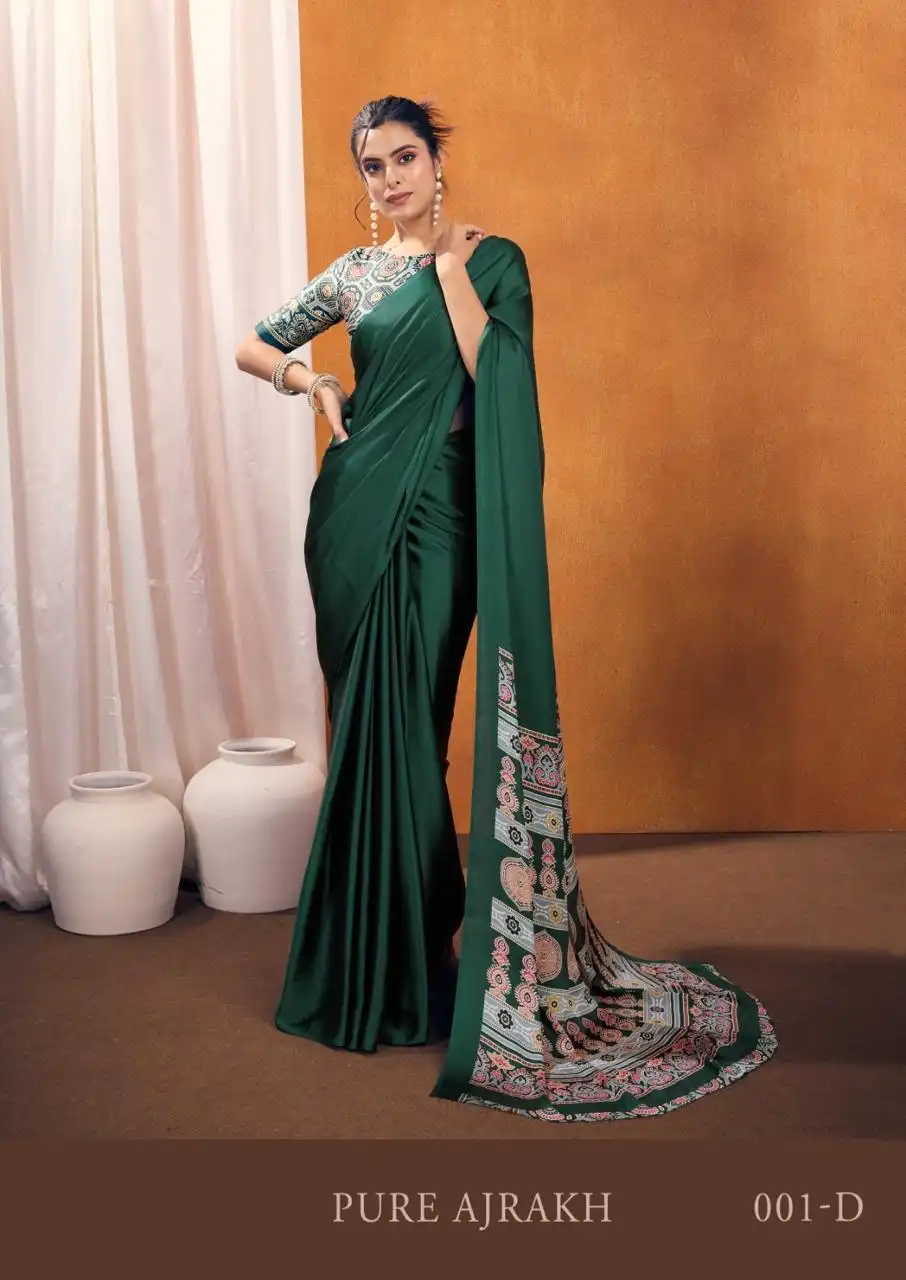 Rajtex Pure Ajrakh 01 Satin Crepe Uniform Wear Saree 2025 |