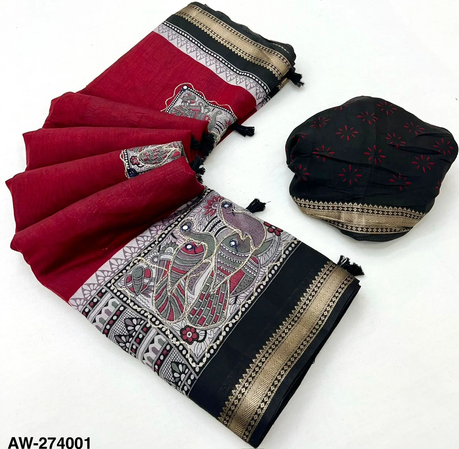 | Work | Aari Work & Zari Border Print |