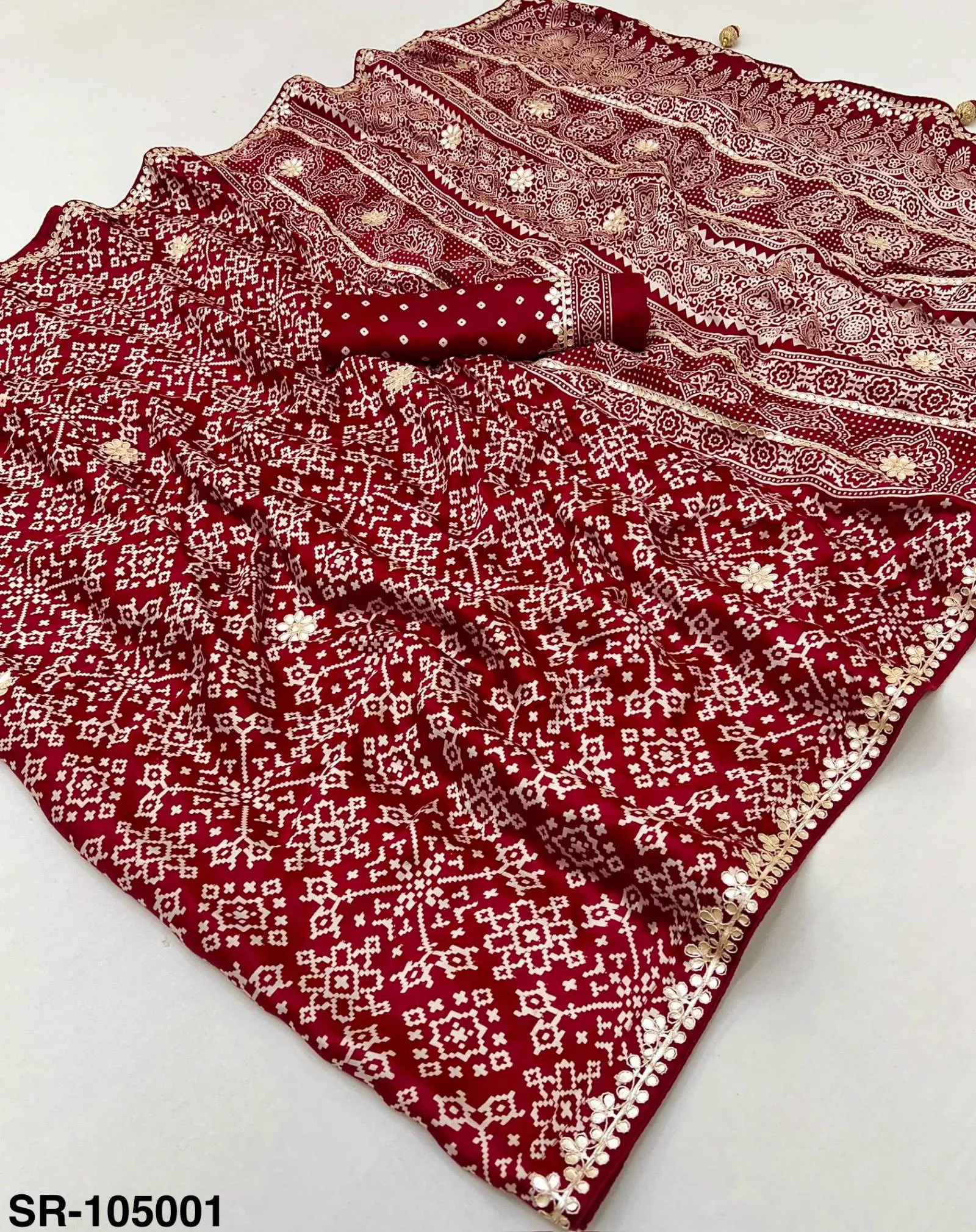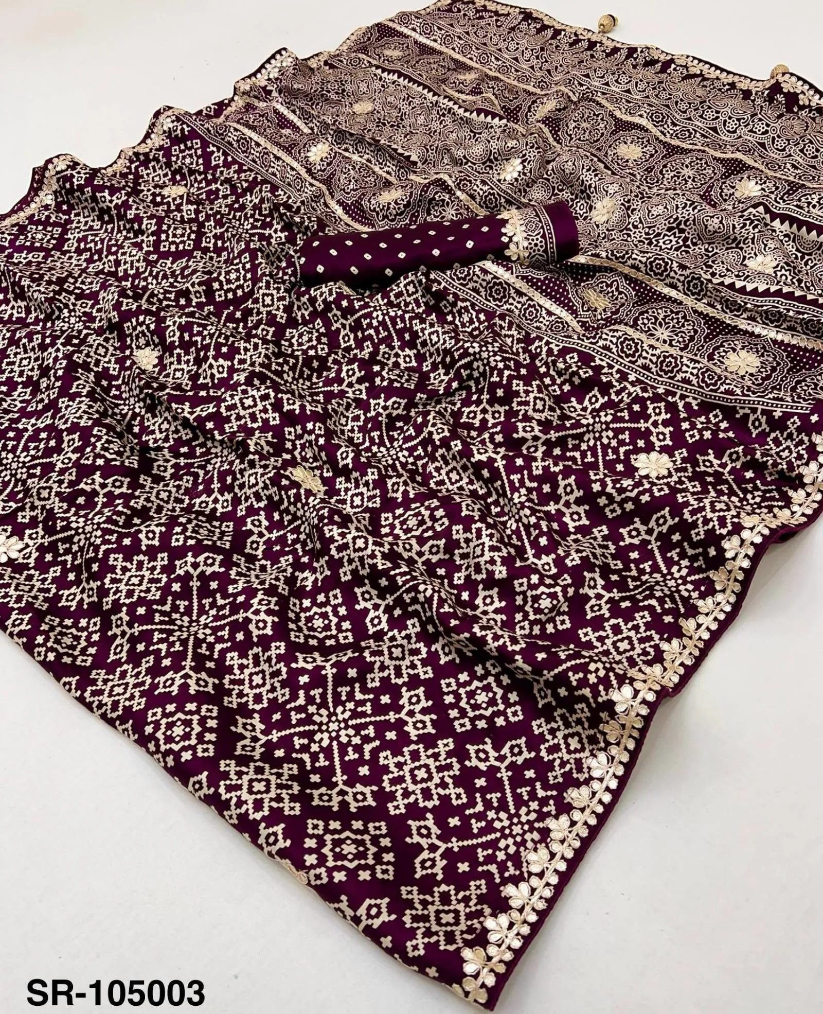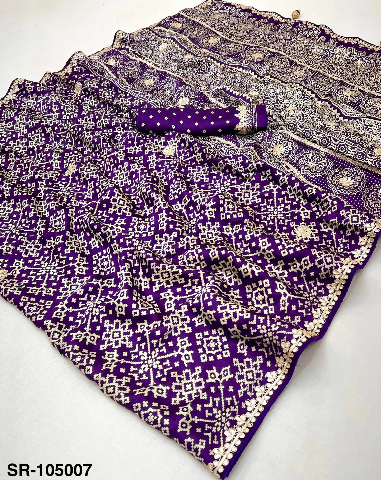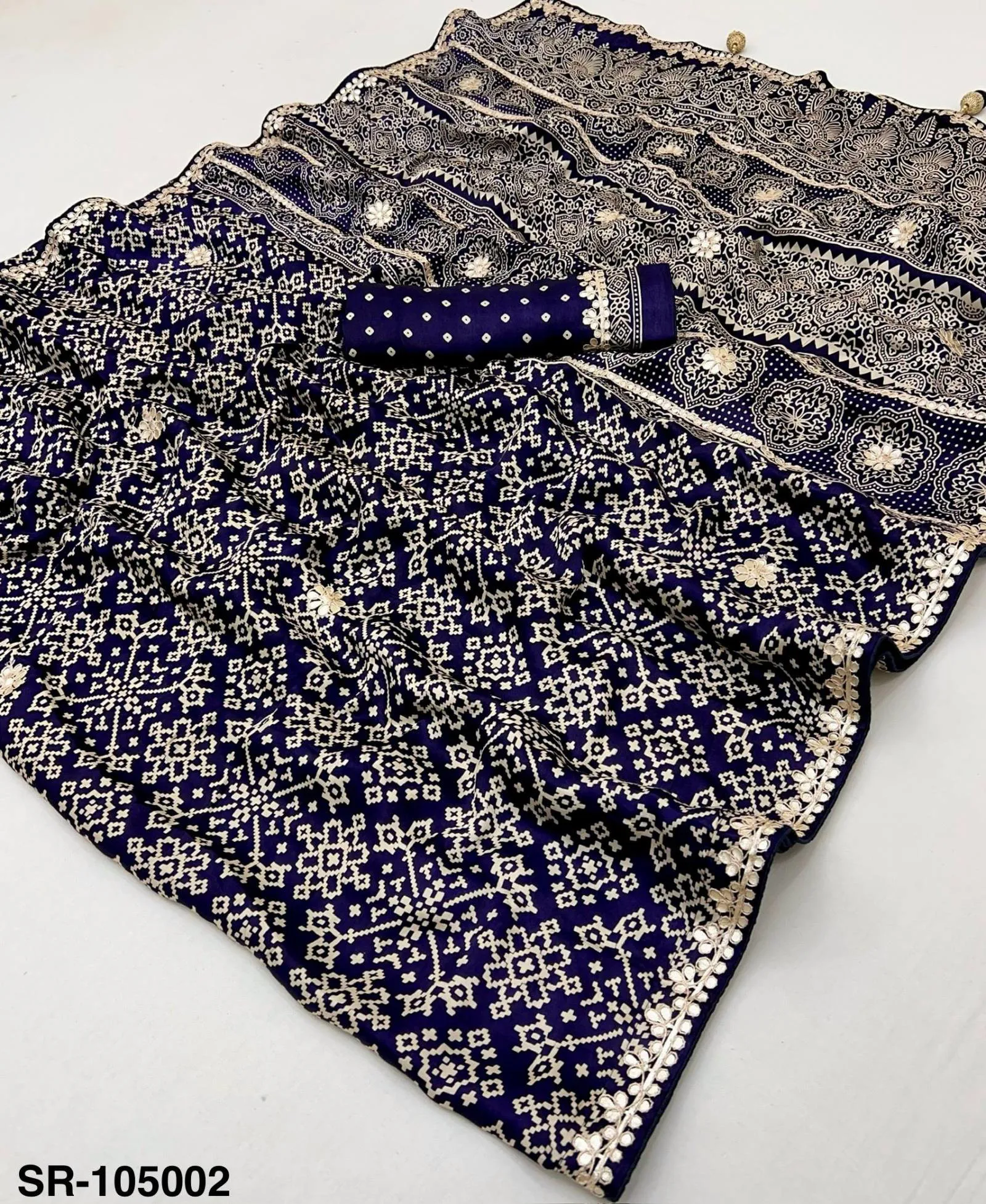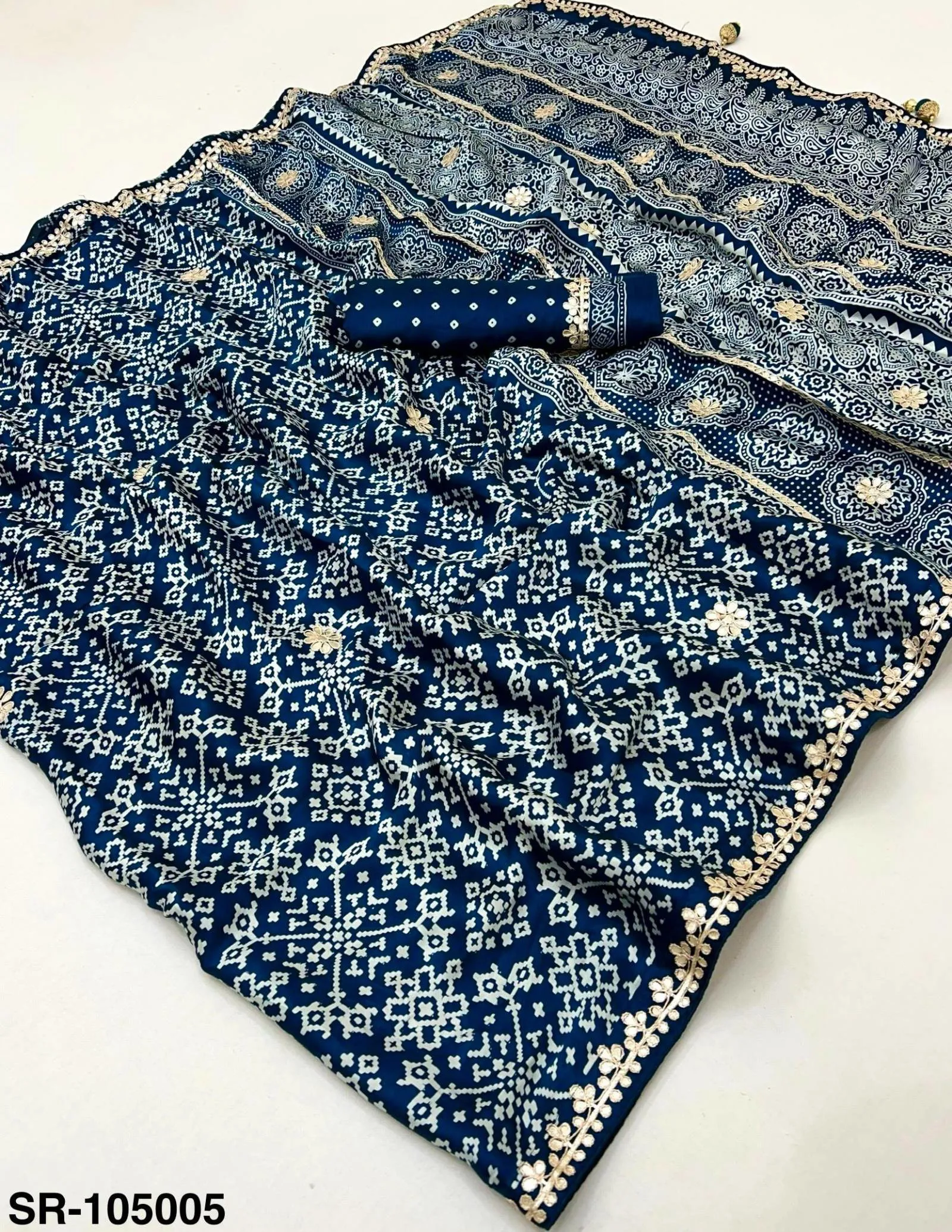 Fabric Pure Modal with Patola Hand Block Print & Gota Patti Work