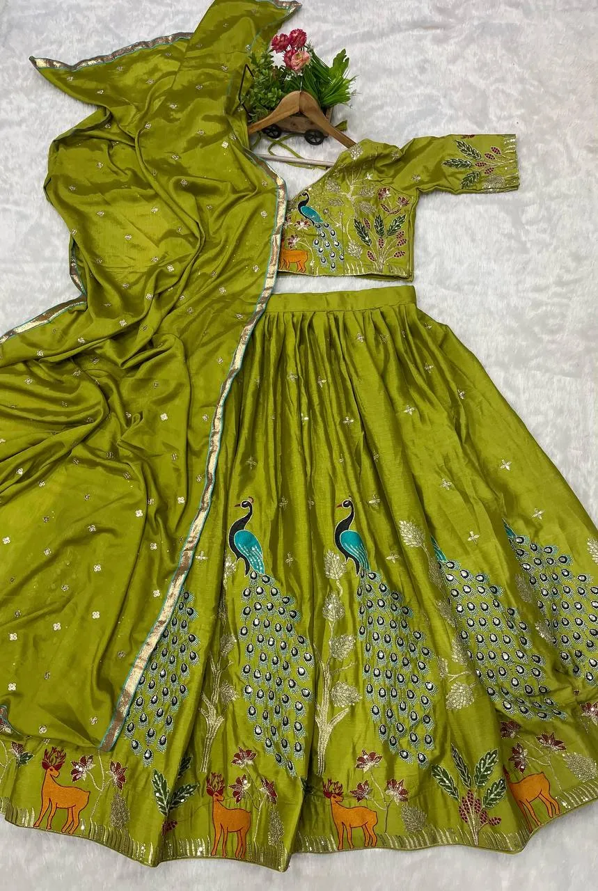 RBC 1116 Tissue Silk Peacock Embroidery Lehenga Choli