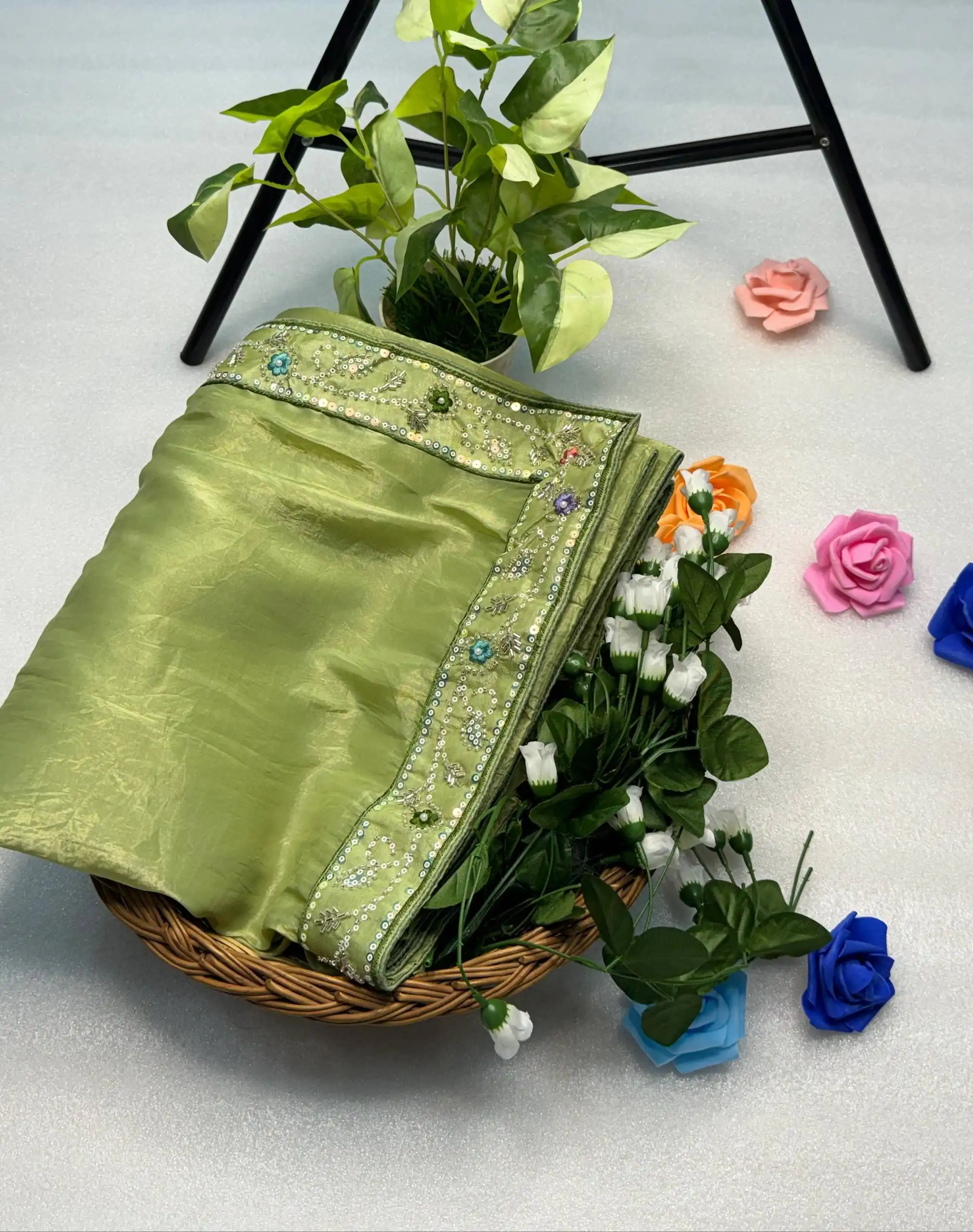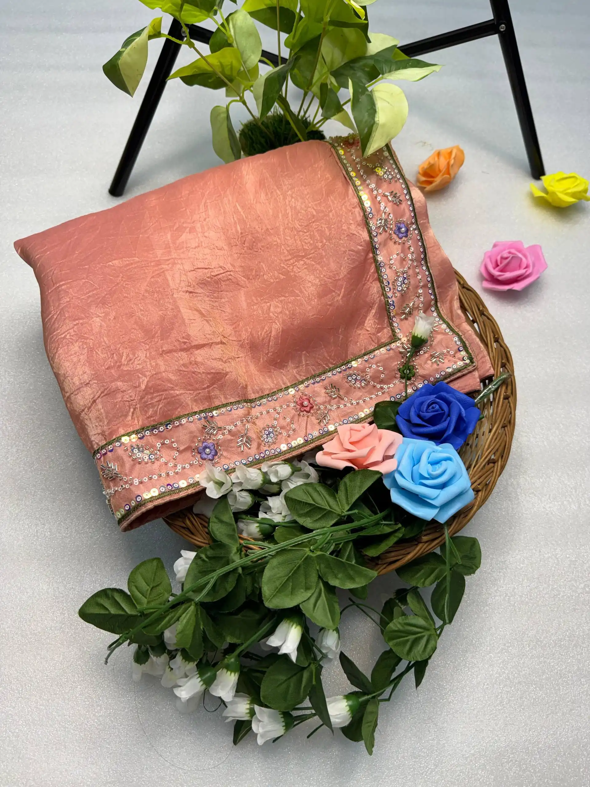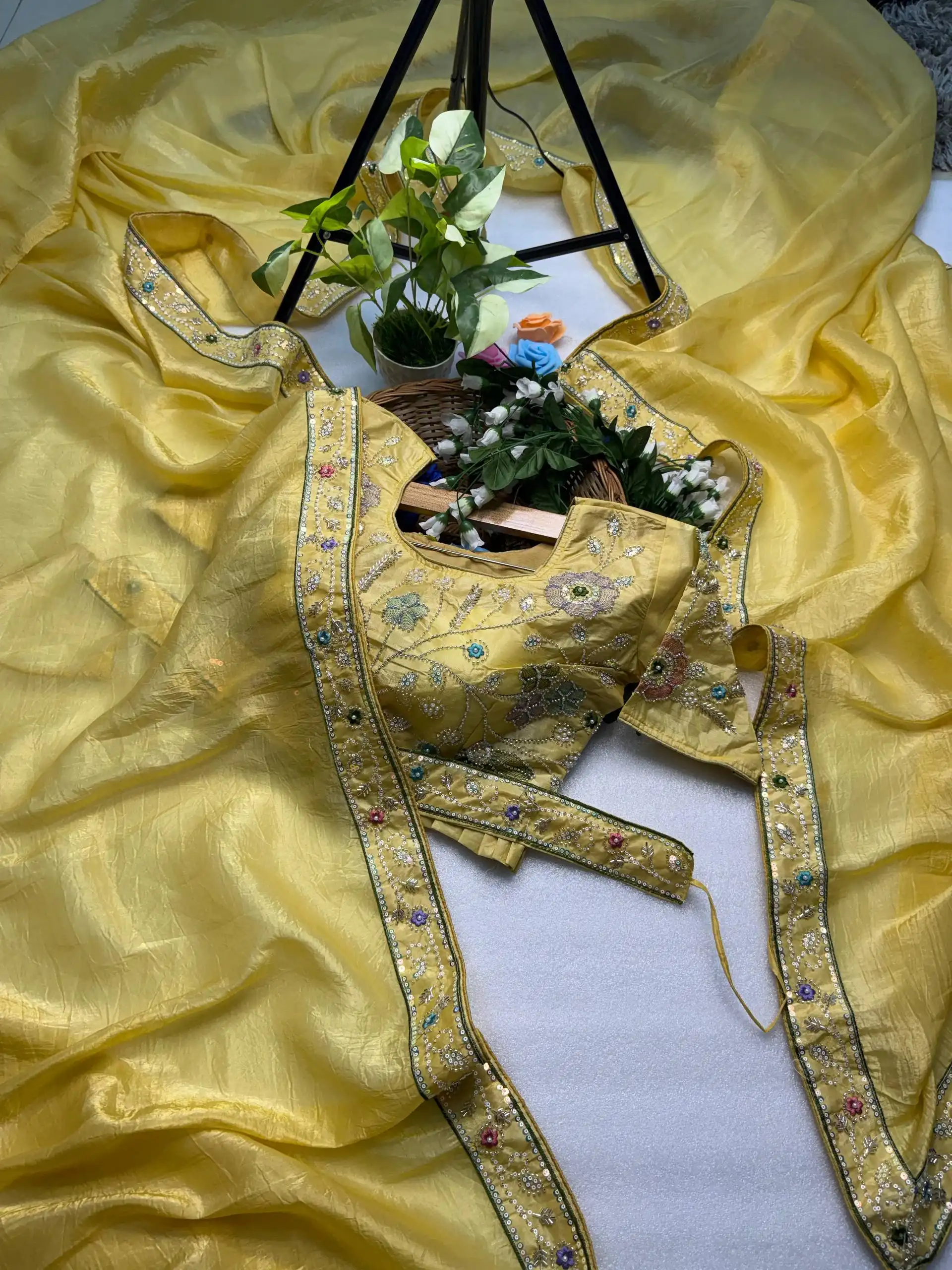 Saree: | Gold Crunchy Work: Beautiful Designer Thread, sequence & Beads Embroidery work Lace Border. Craft: Embroidery Purity : Pure |