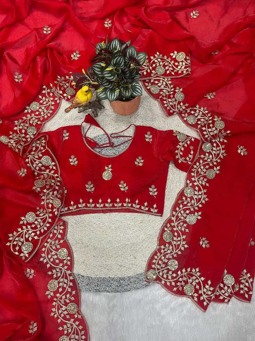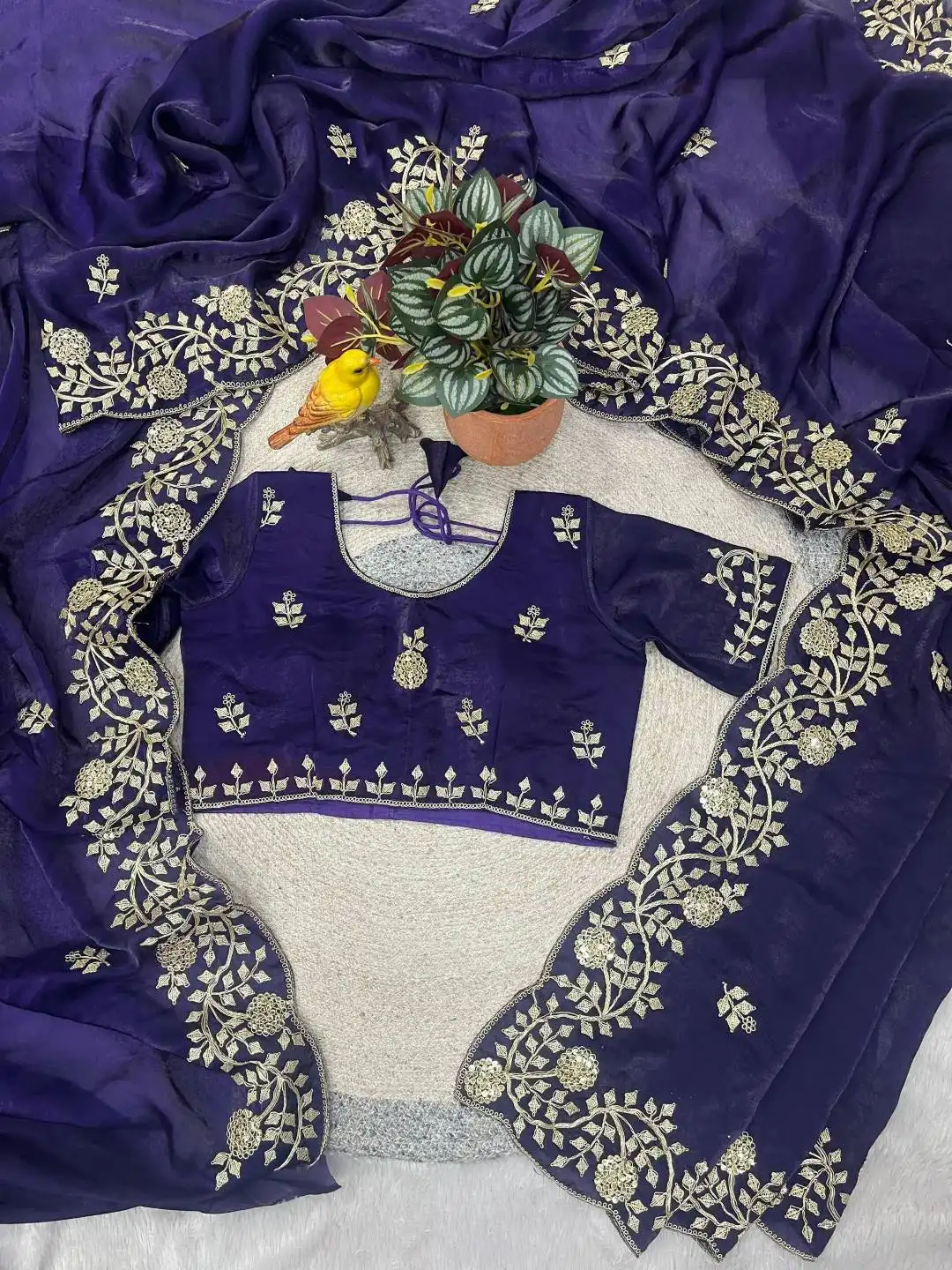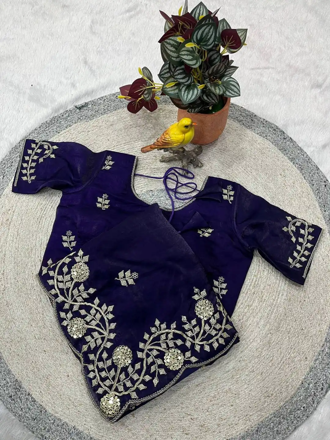 | Blouse: | Fandy Satin Silk Work : Designer 5mm Sequins Embroidery With jaipuri Dori Work Pattern : Unstitched Blouse with Sleeves. |