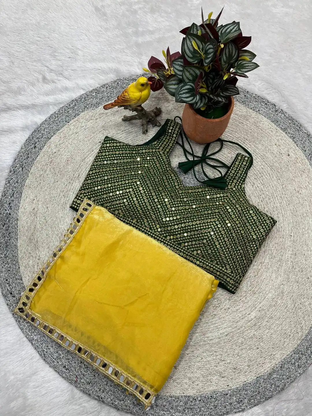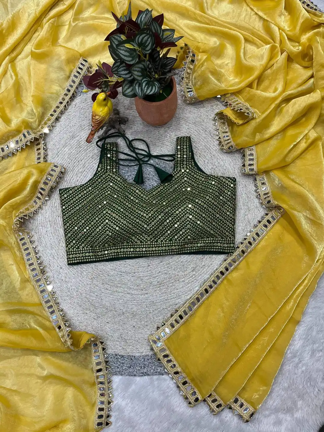 Work: Solid Plain Saree with Embroidery Work of Jari dori with Embellishment work of Real Mirror.