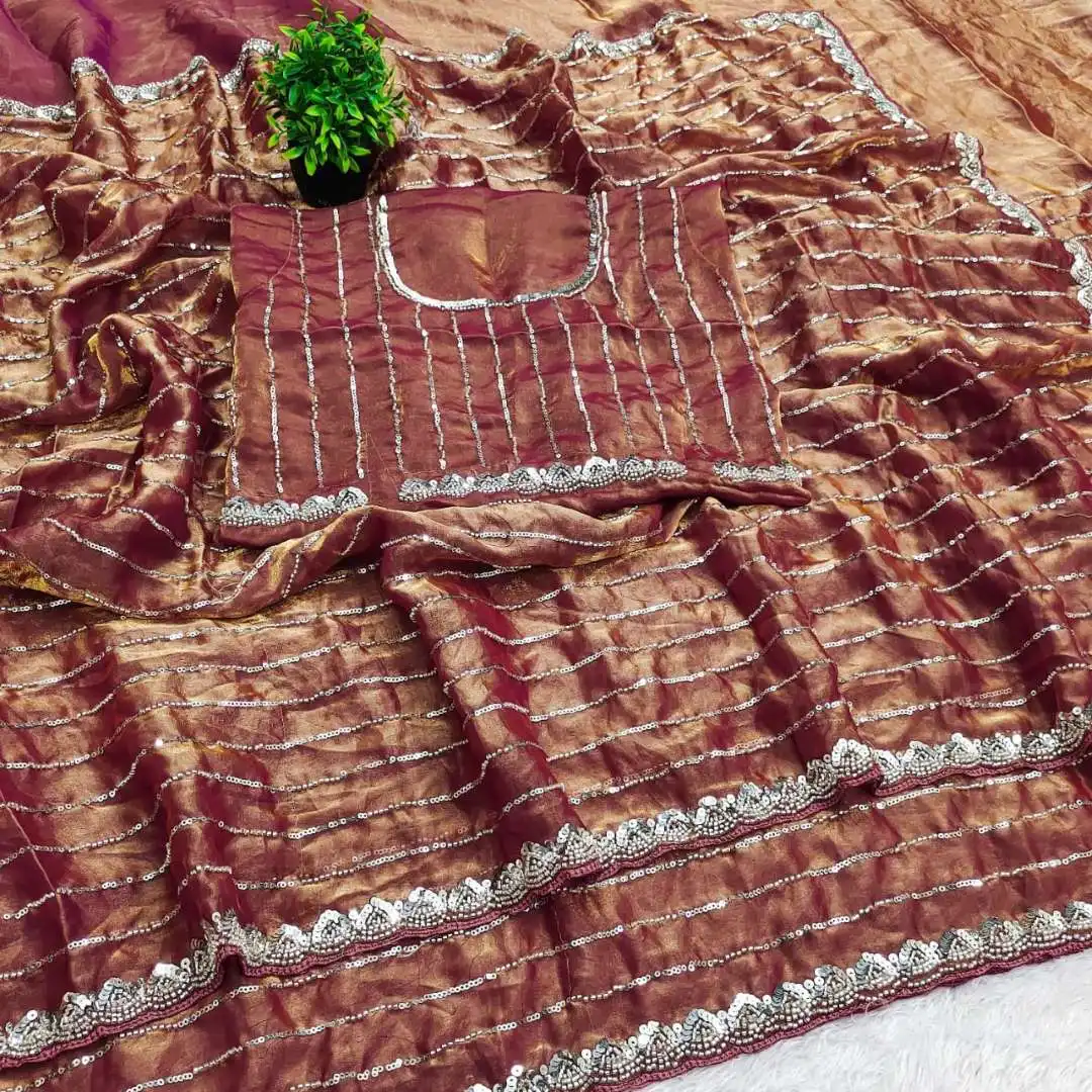 Blouse: Space silk with beeds work blouse cut:- 0.80