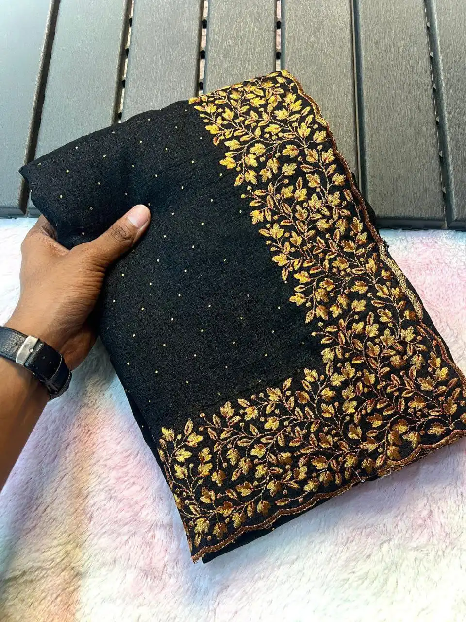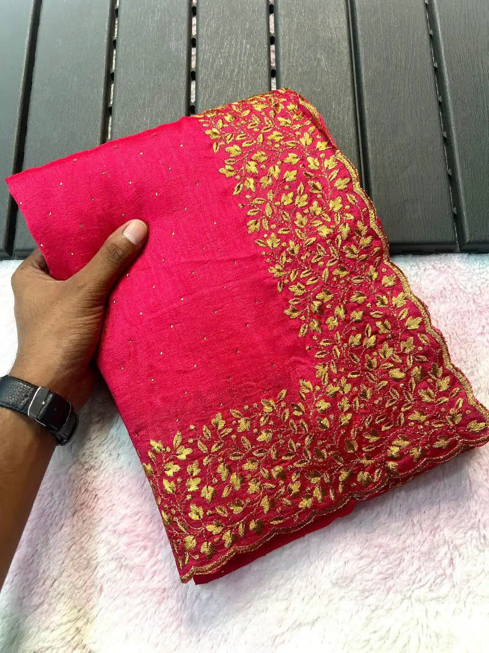 Saree: | Vichitra silk SAREE LENGTH: 5.50 Mtr SAREE WORK:Zari work with stone work |