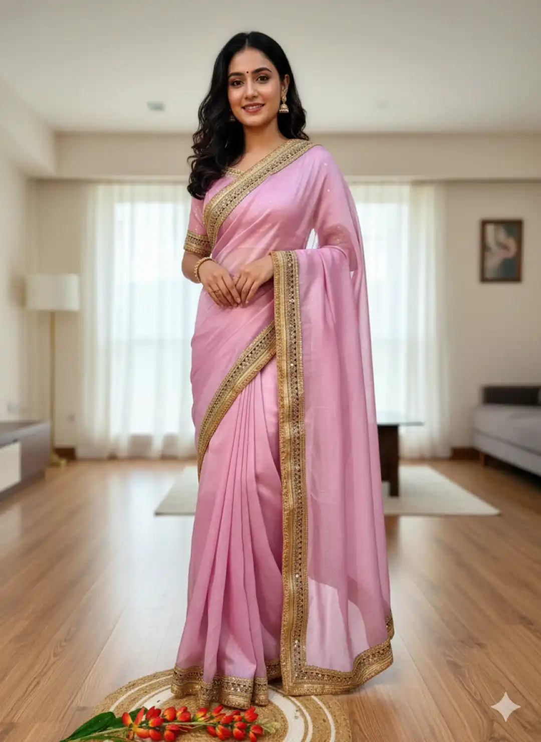 Saree:Twill net WORK : Embroidery Coding sequins Lace on all over the saree