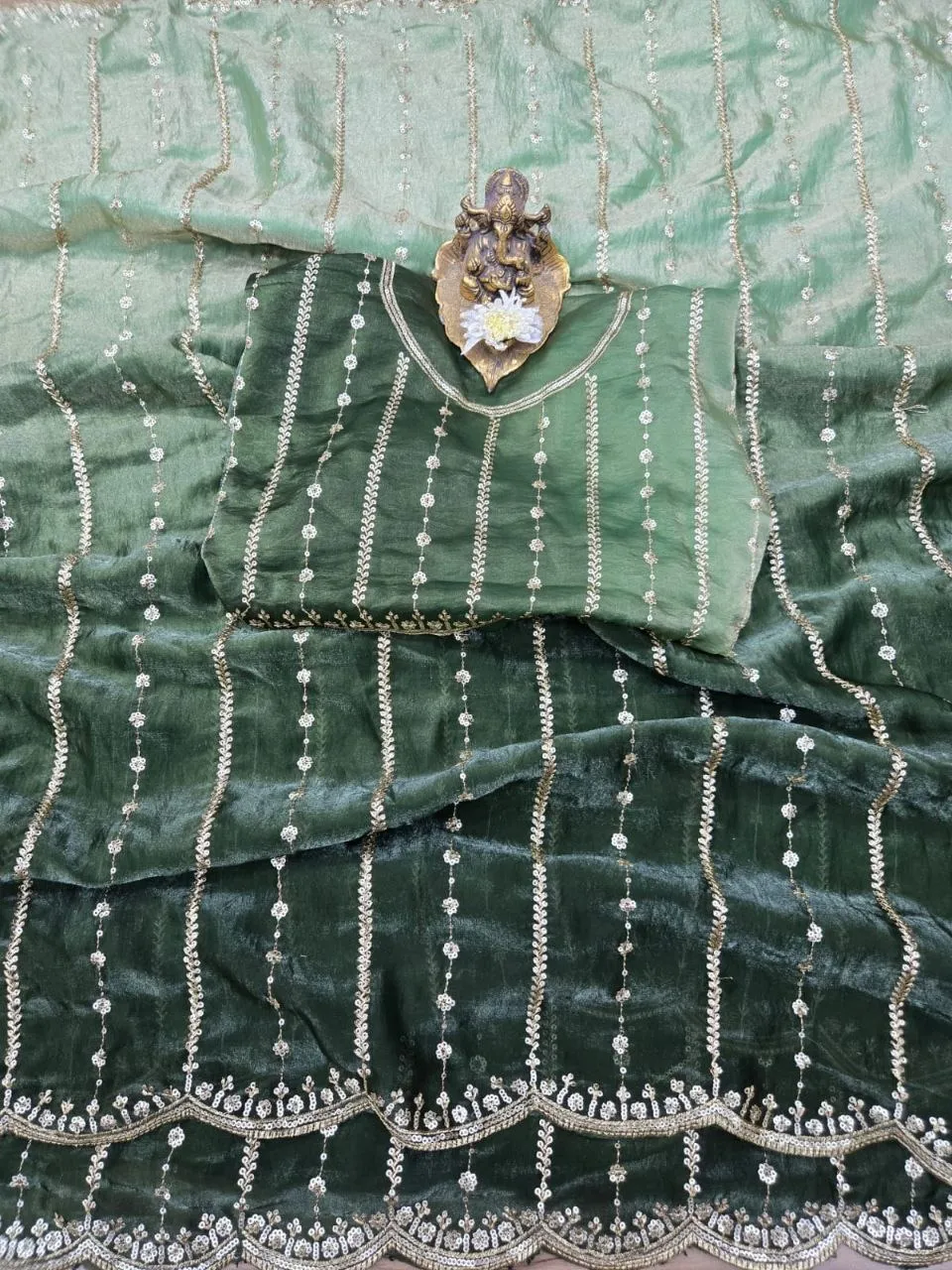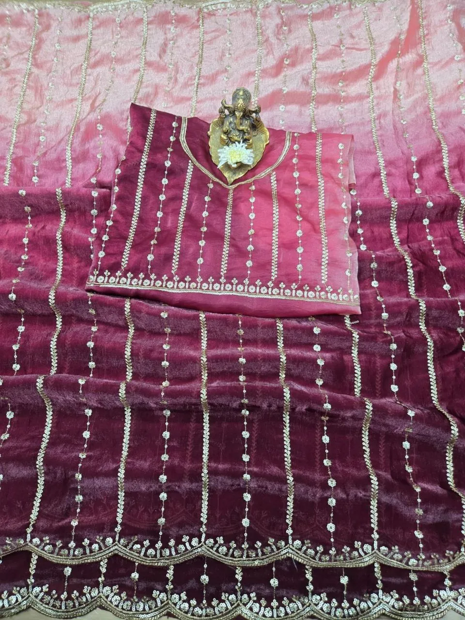 | Saree | Fendy Sattin pending Dual Shad Saree Multi Sequence Emrodairy Work |