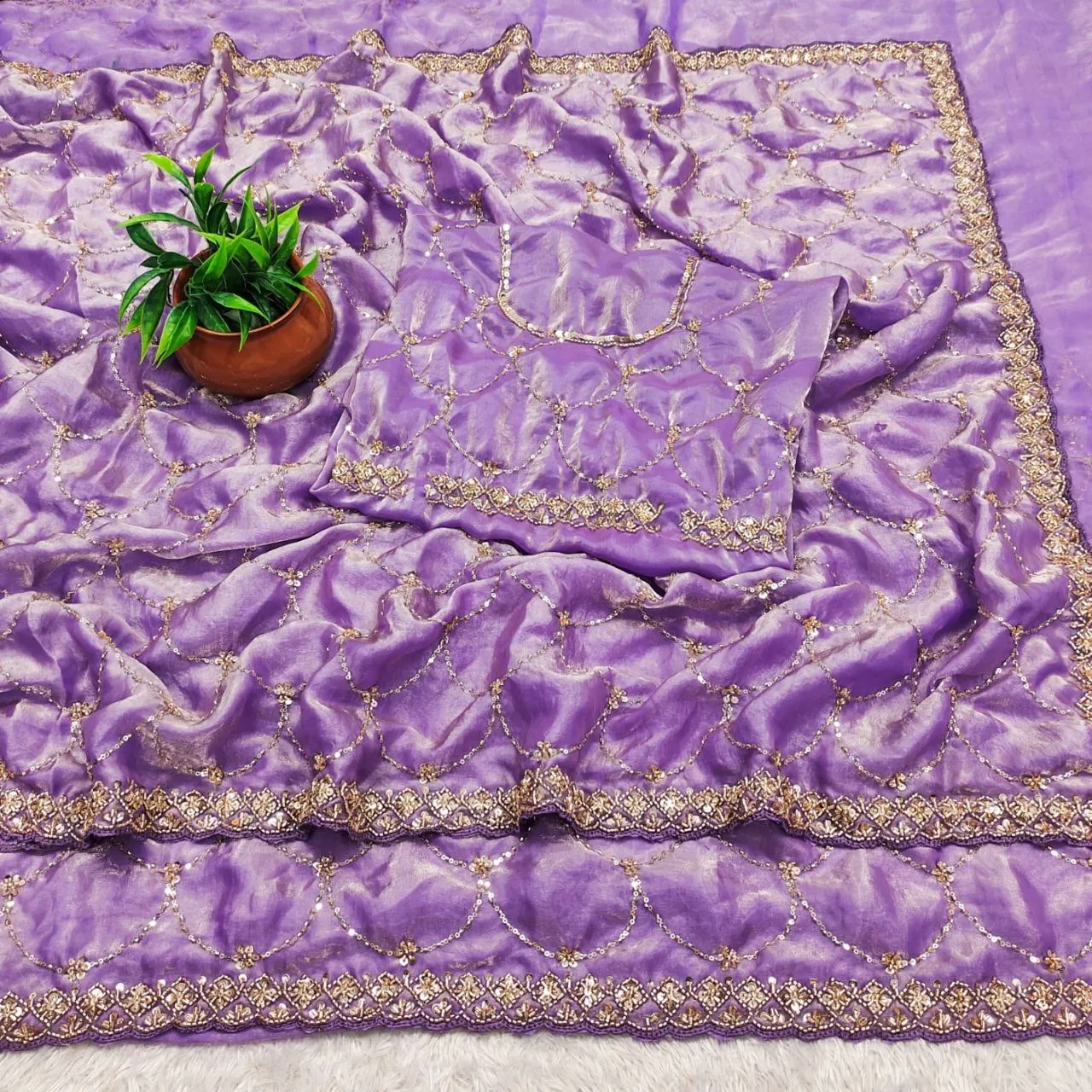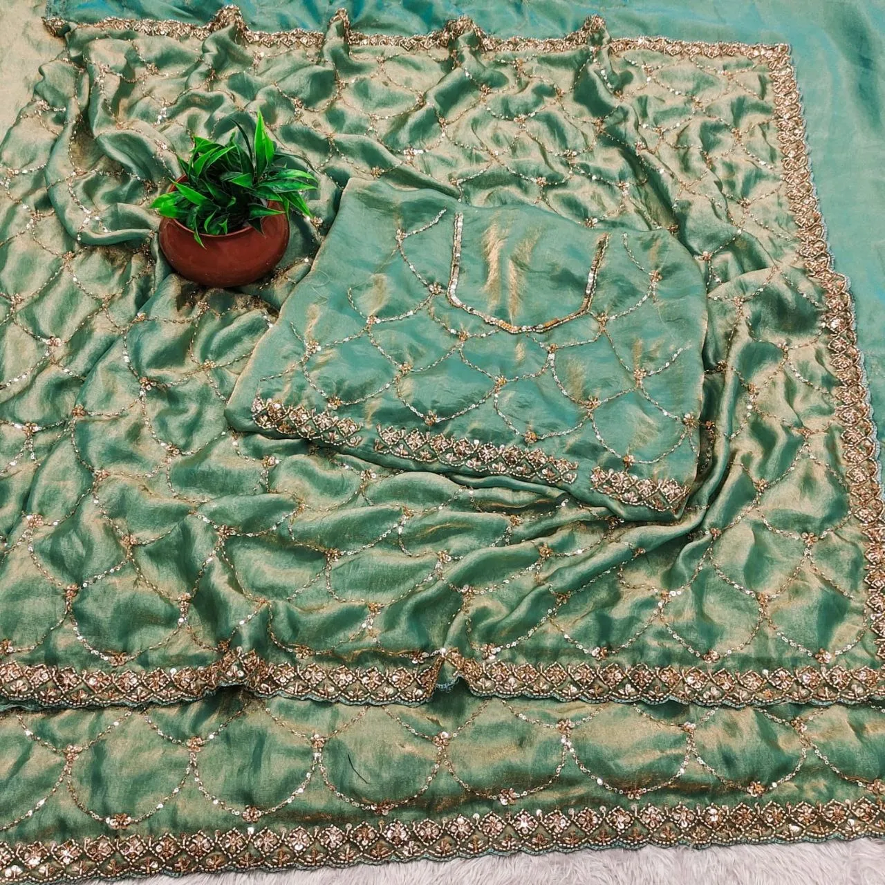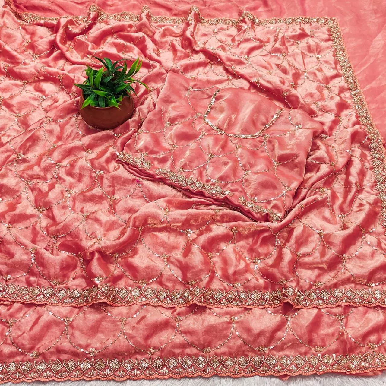 Saree Space silk, Length- 5.50 Mtr, Work- Original beeds work