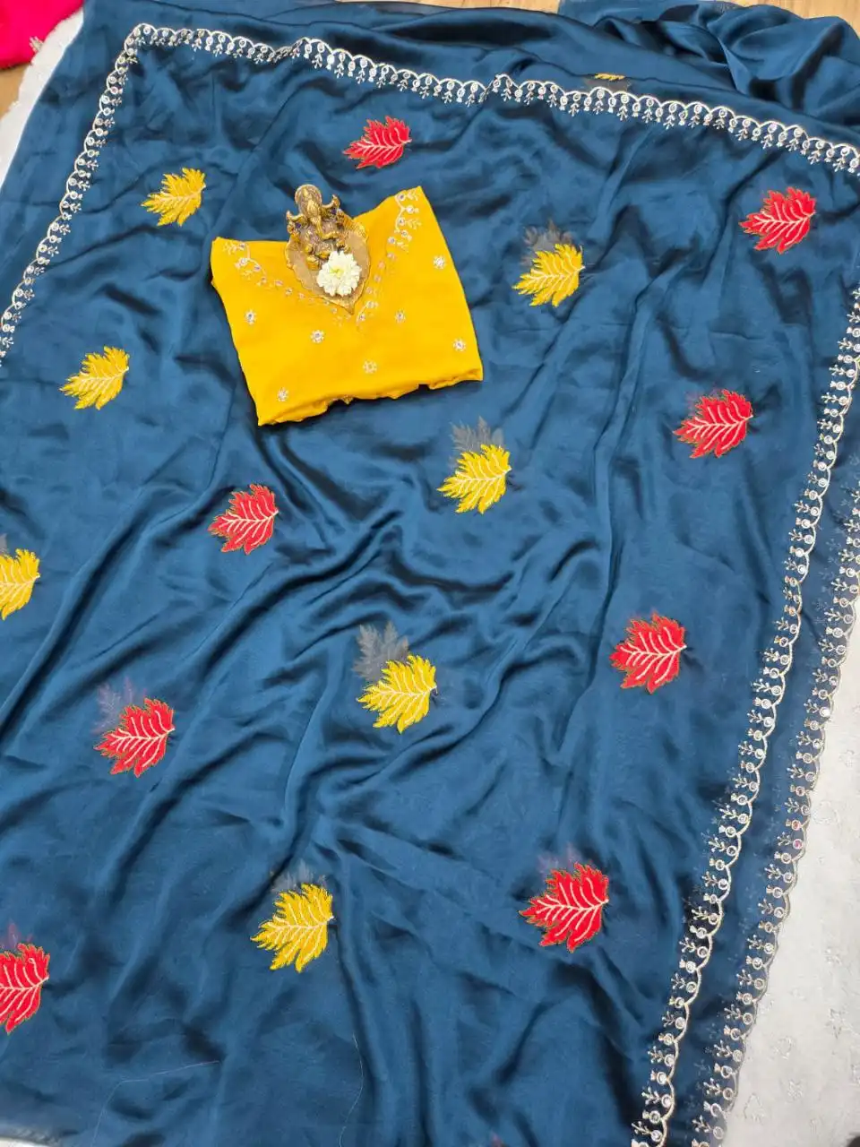 Saree: Rangoli Silk | Length – 5.50 Mtr | Work – Original jari riyal mirror work