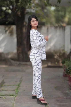 Rm Printed Lycra White Co Ord Set Latest Collection