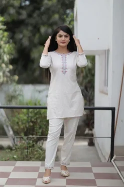 Rm Pure Cotton Co Ord Set White Western Collection