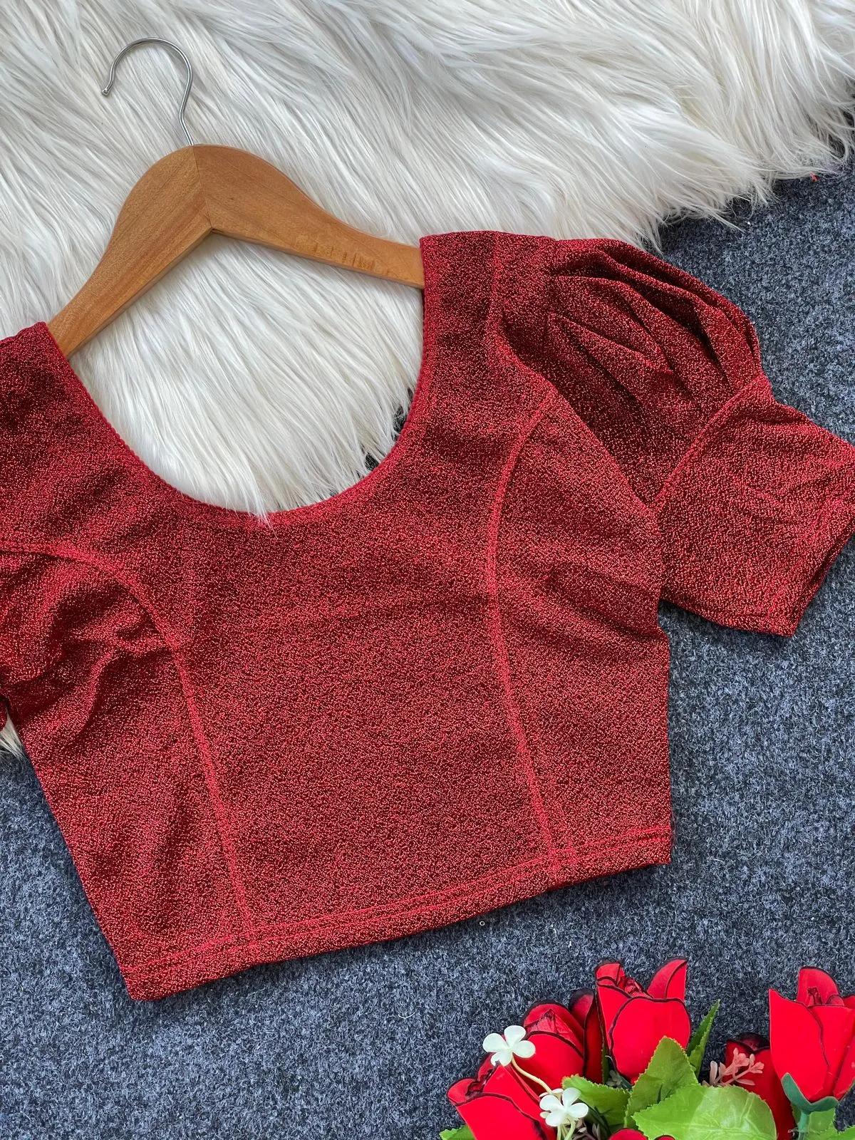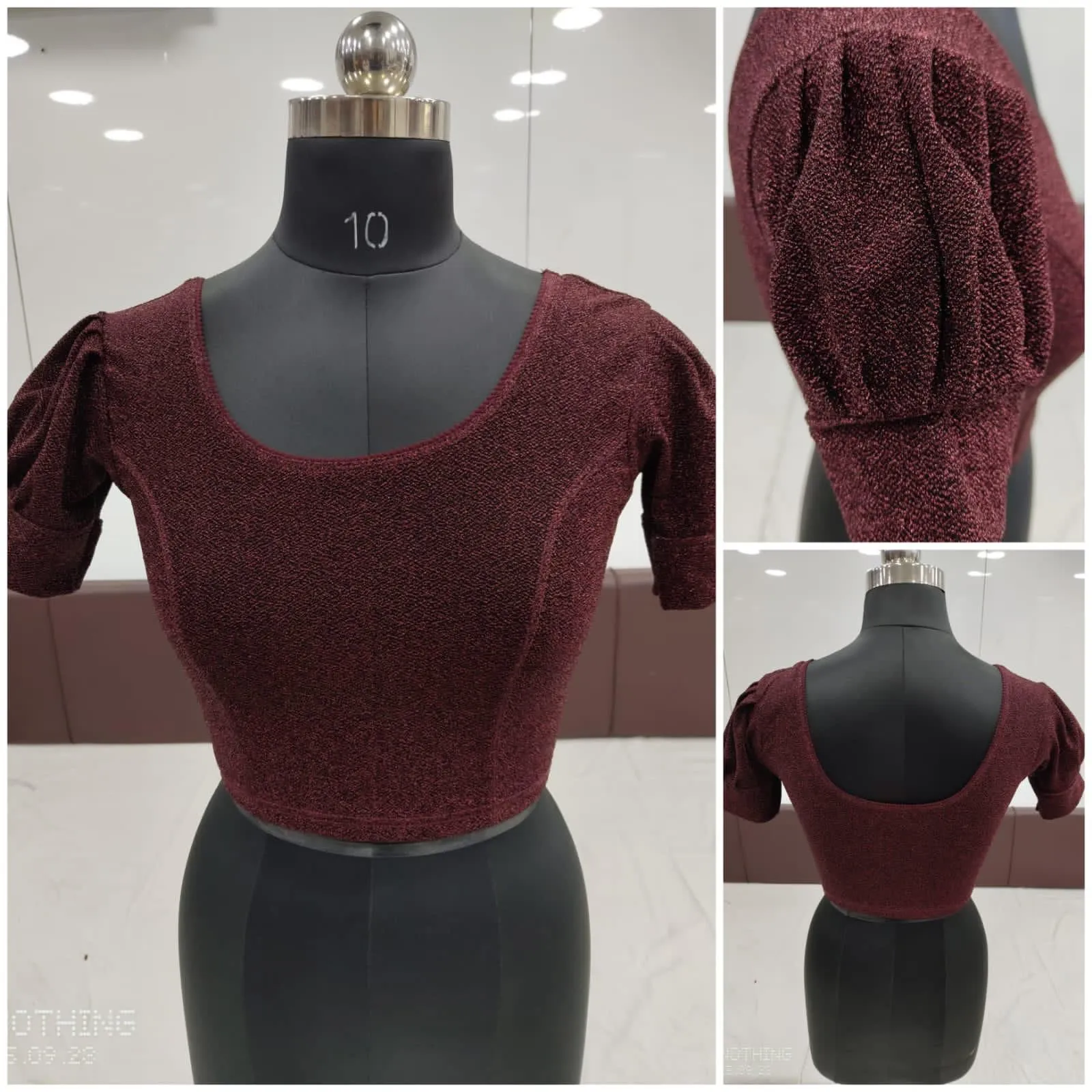 Blouse Imported Korean Stretchable, Slive- Balloon, Back Pattern- Simple Round Shape, Neck- Round Neck, Size- XL, ( 30 – 40 UPTO)