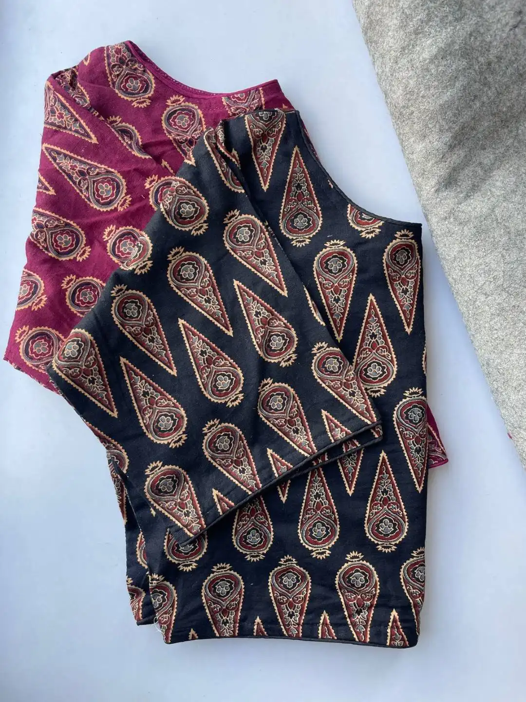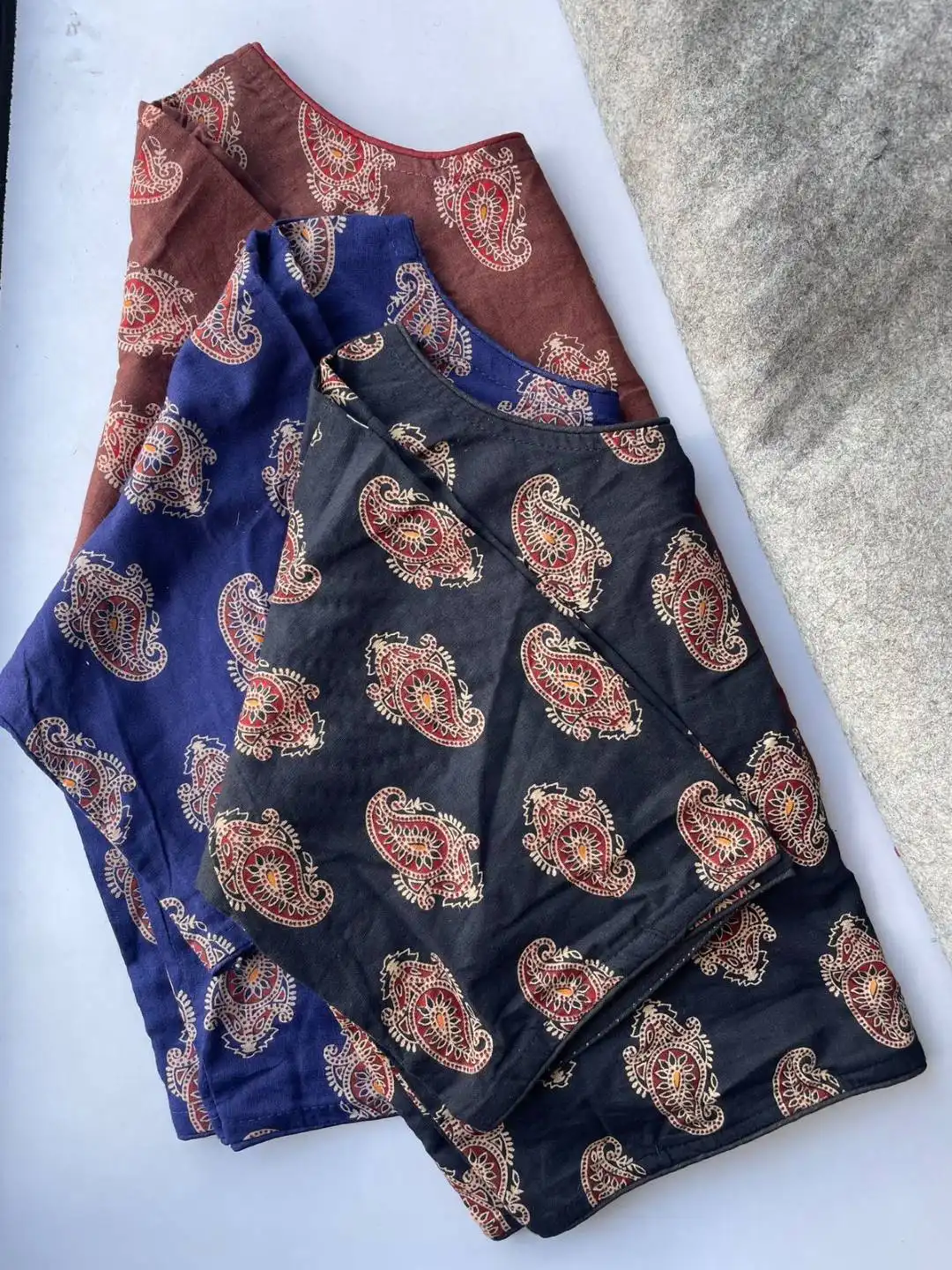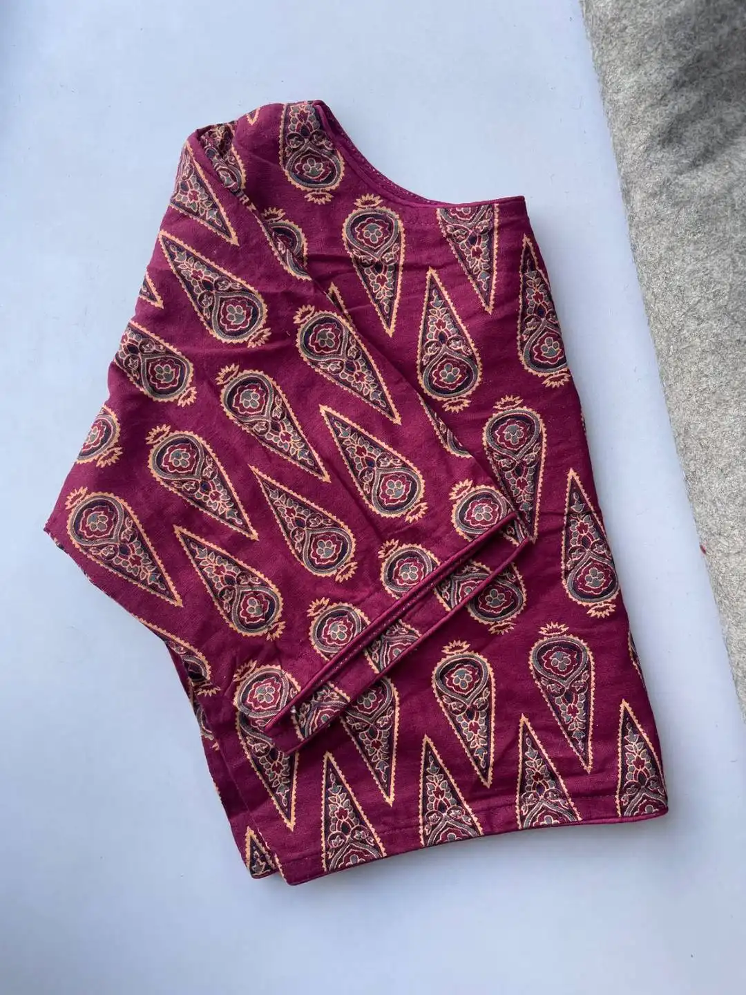 | Blouse: | South HandBlock Cotton | Height 15 | Pattern Boatneck Kum Round Neck in Princess Cut | Sleeve Elbow 10 inch | Open Front Hook | Pad No | Astar No |