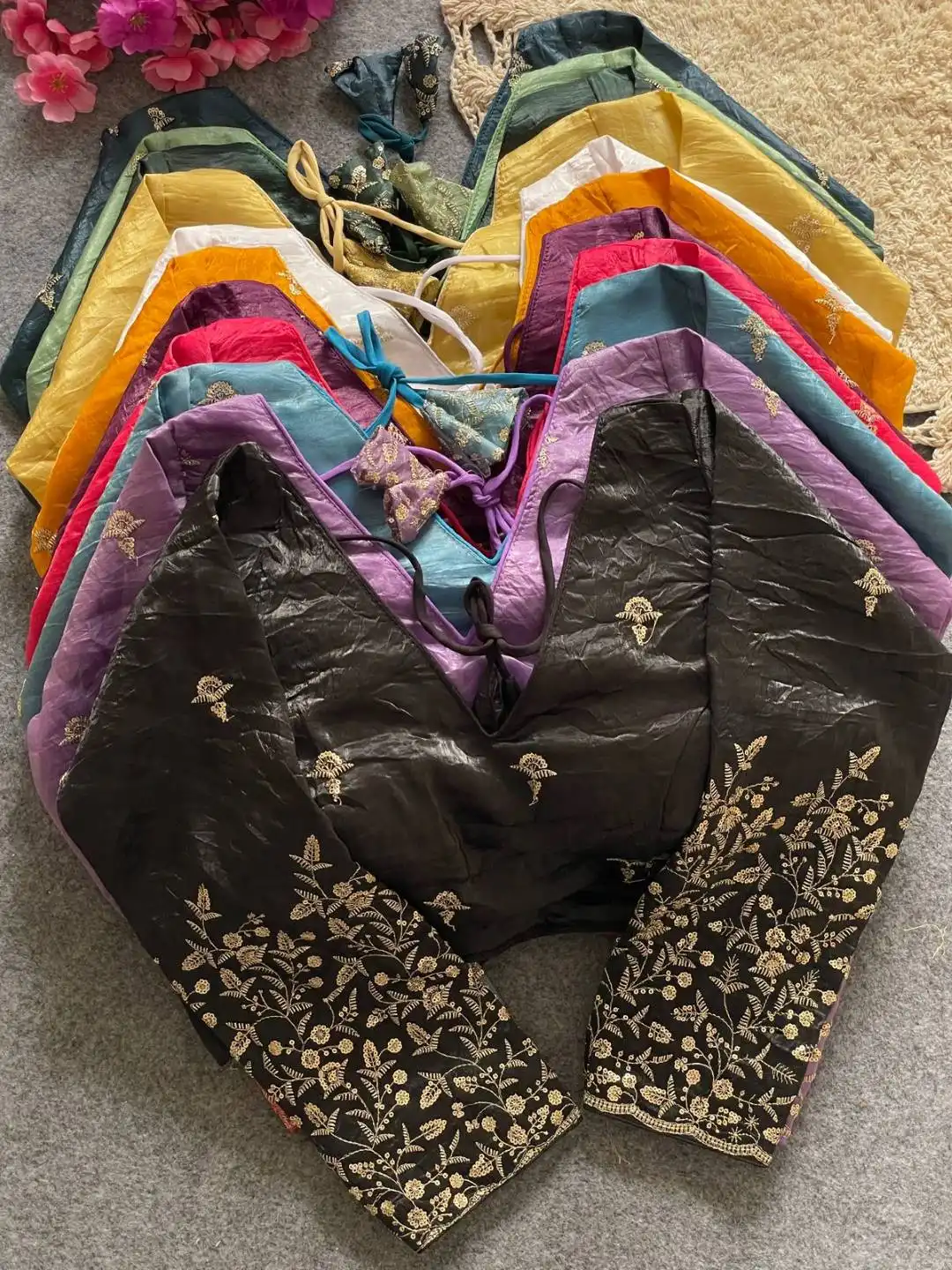 | Blouse: | Fendi silk | Sleves: 18+ sleeve | Pad: yes | Height: 15inch+ |