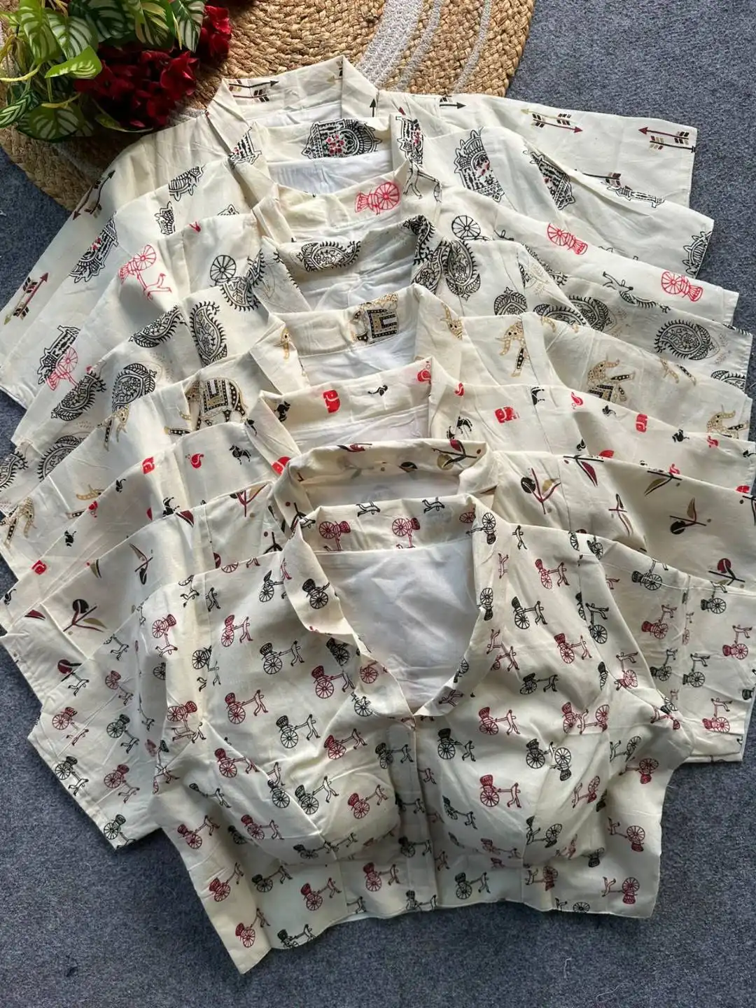 | Blouse: | Magic Cotton | Height :- 15 inch | Sleeve :- Elbow | Open :- Front with Hook | Pad :- Yes | Lining/Astar :- Yes Cotton |