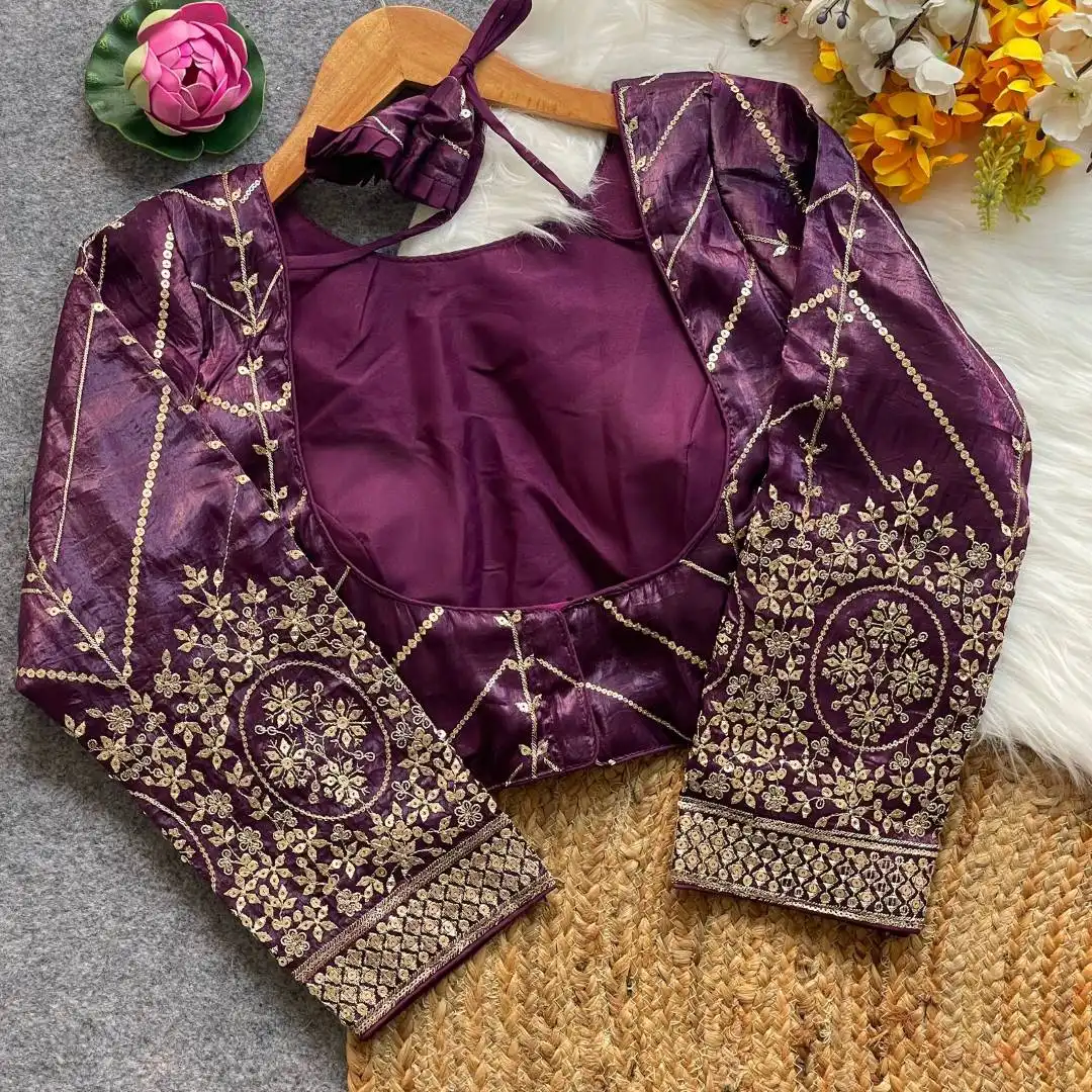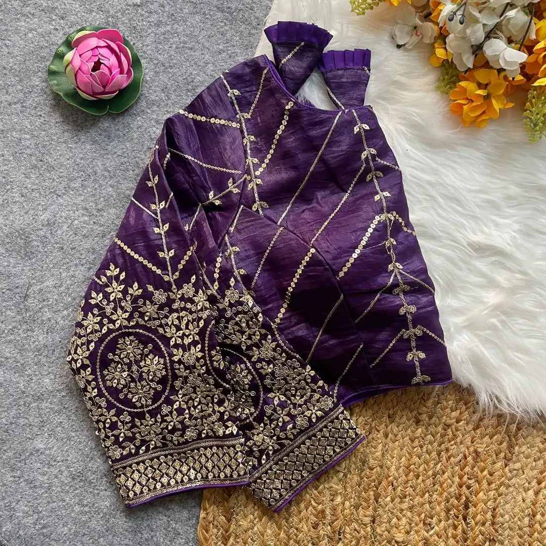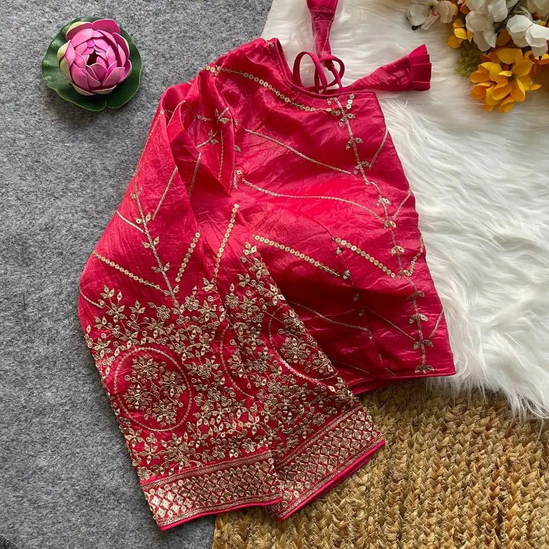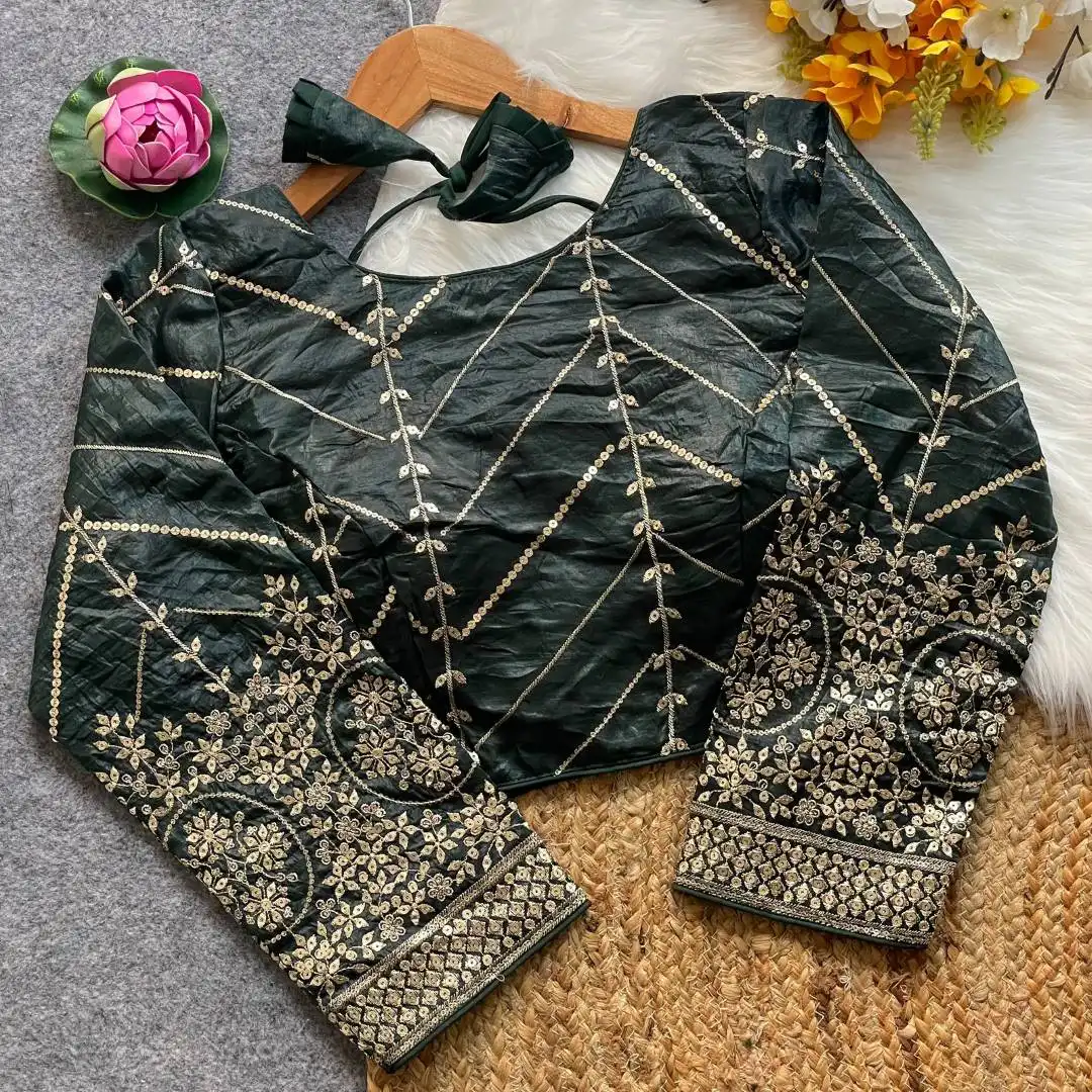 | Blouse: | Fendi Silk | Golden Embroidery Work With Sequence All Over Blouse | Sleves: 18+ Sleeve | Pad: Yes | Height: 15inch+ |