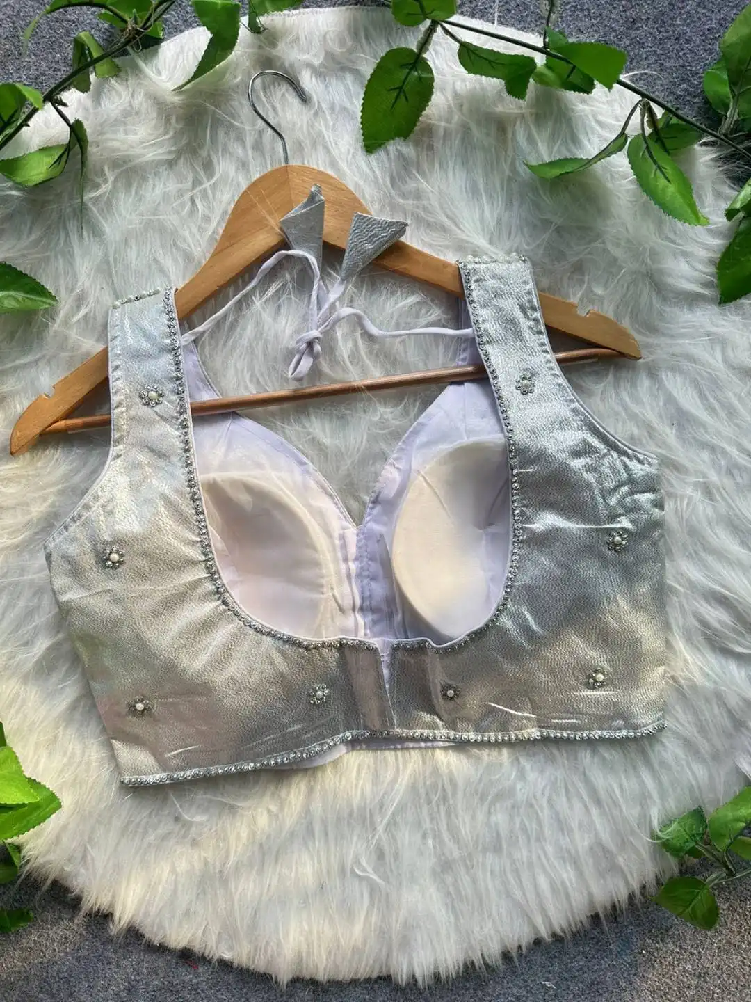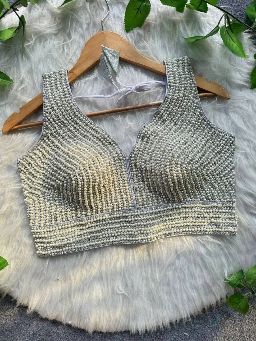 | Blouse: | Pure Silk Handcrafted | Back Hook Open | Pure Handwork Pearl n Moti n Back Huk |