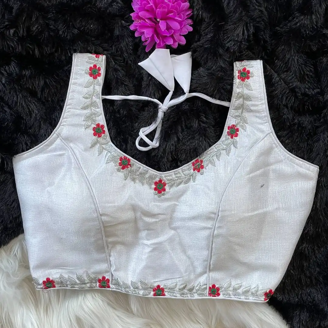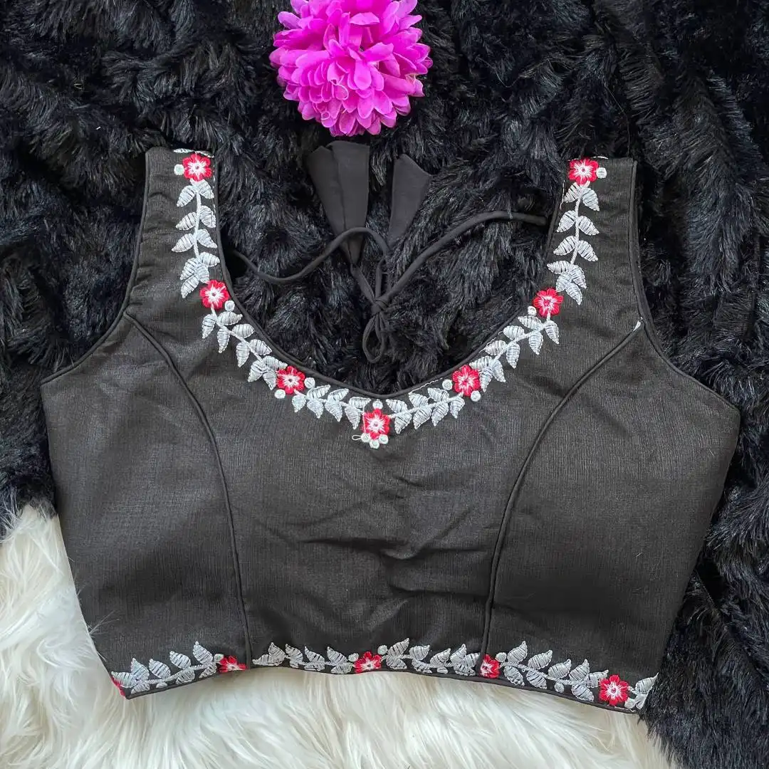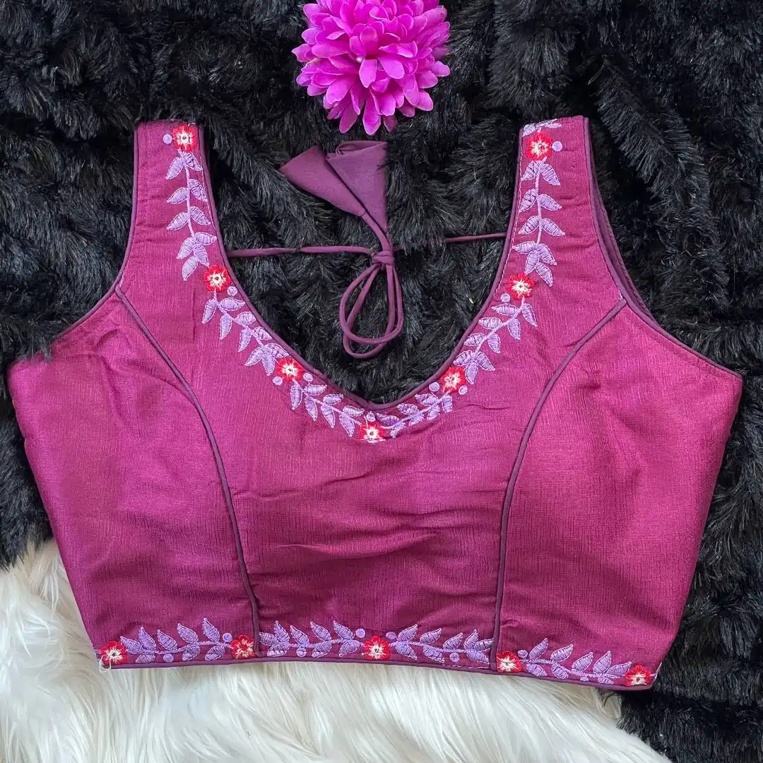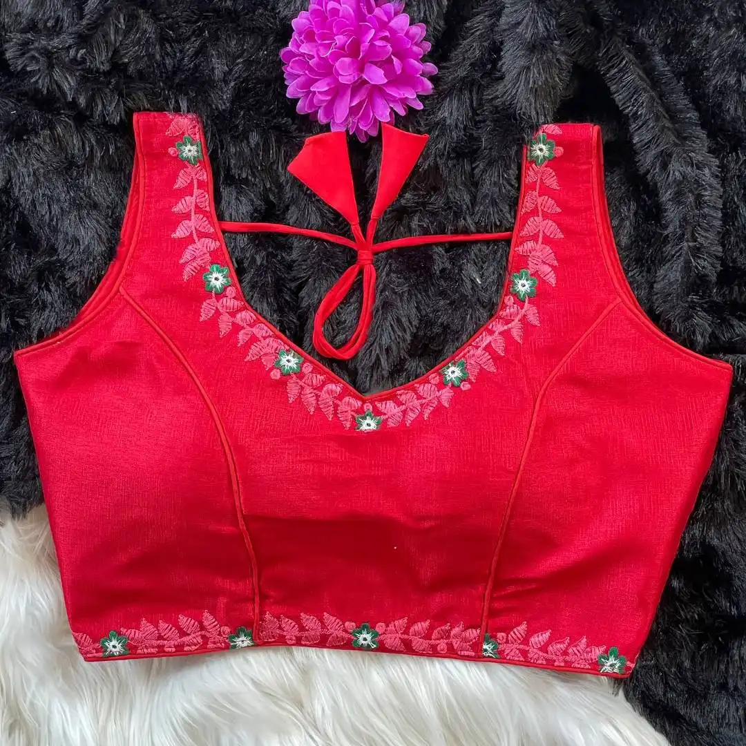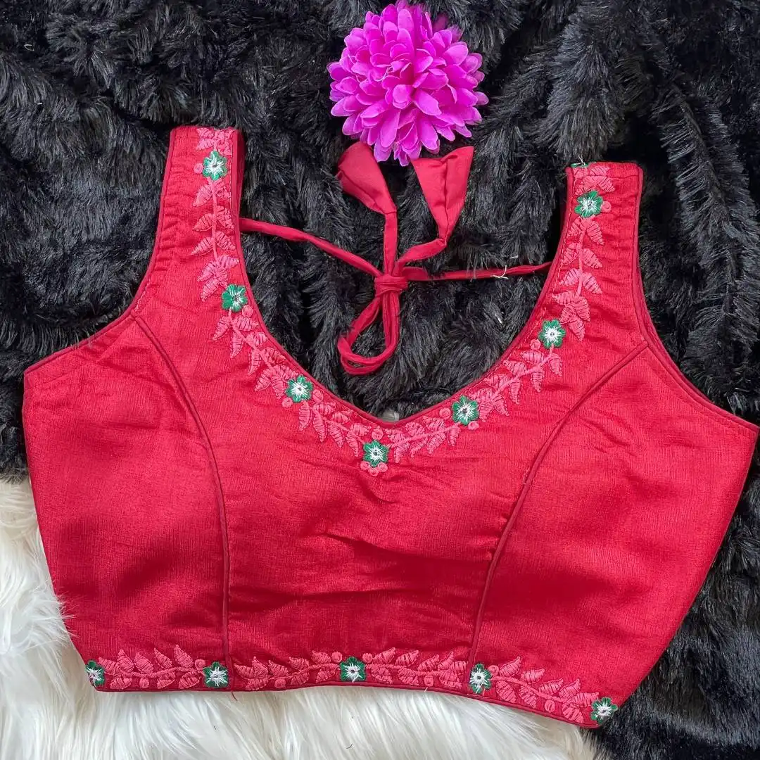 | Blouse: | Heavy Milan Silk | Beautiful Tone To Tone Machine Embroidery Work | Red Rose |
