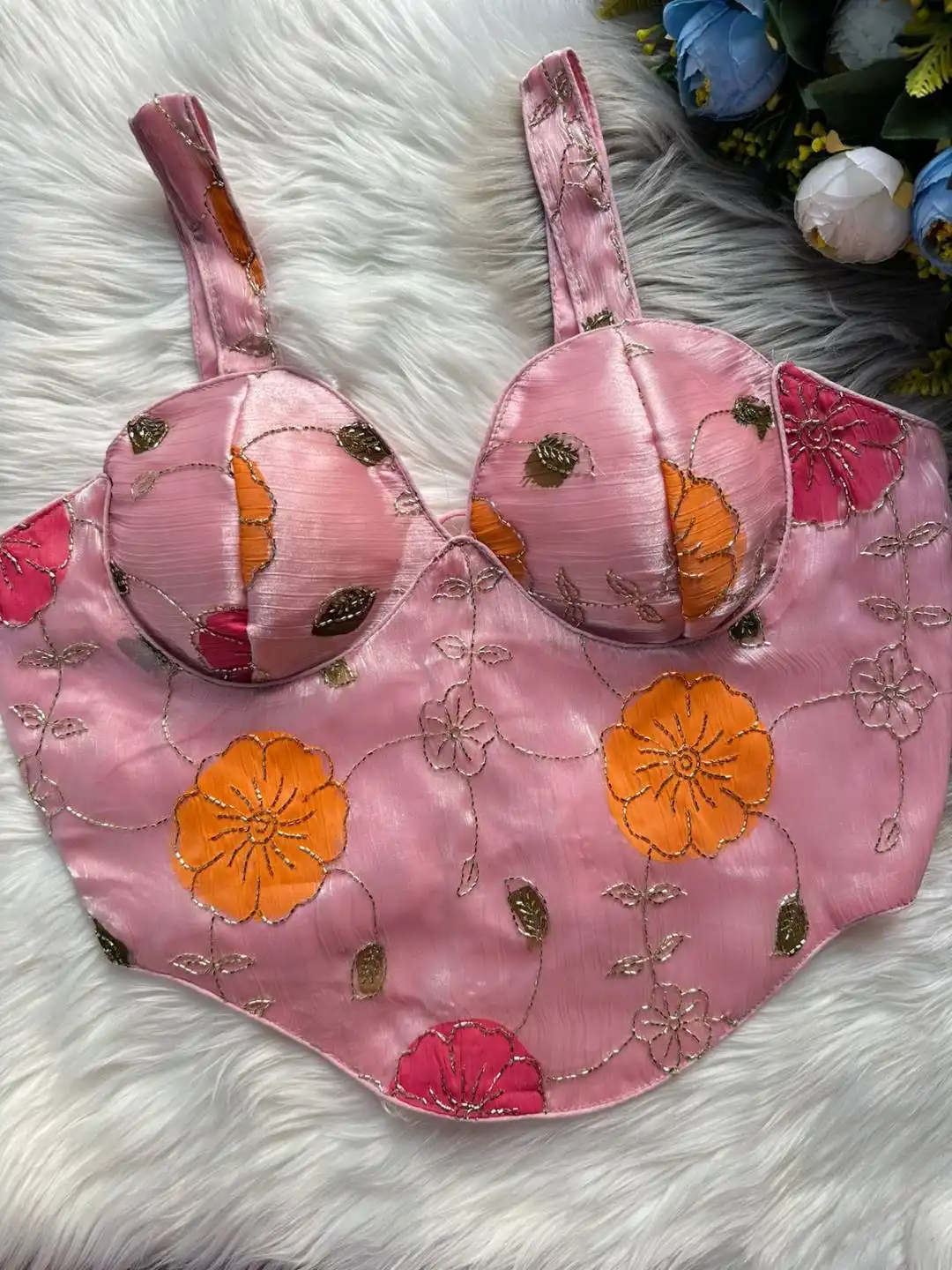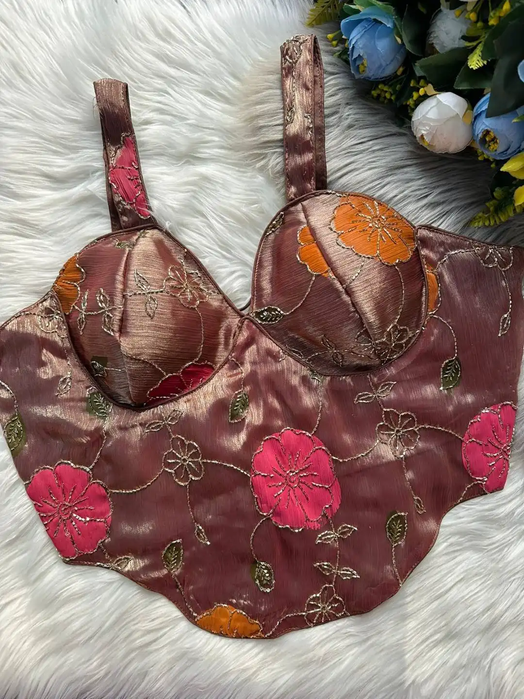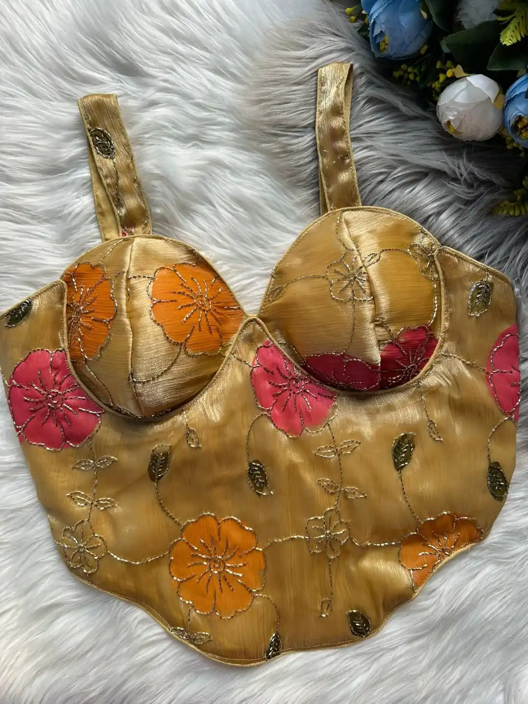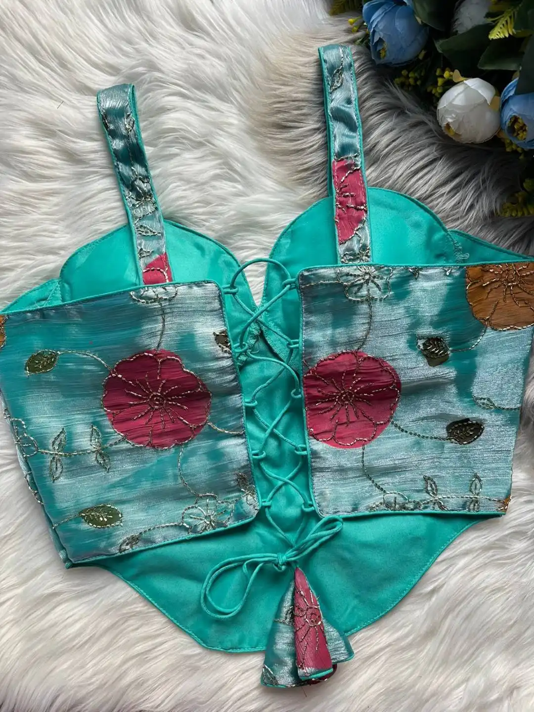 Blouse: Heavy Silk With Beast Works | Chandani Blouses | Sleeves:- SleevesLess | Desgine:- Beautiful Partywear desgine Heavy Stitching Heavy Padded Handmade Hooks With Beautiful Sudori Back open Style | Heavy Position Print With beast work