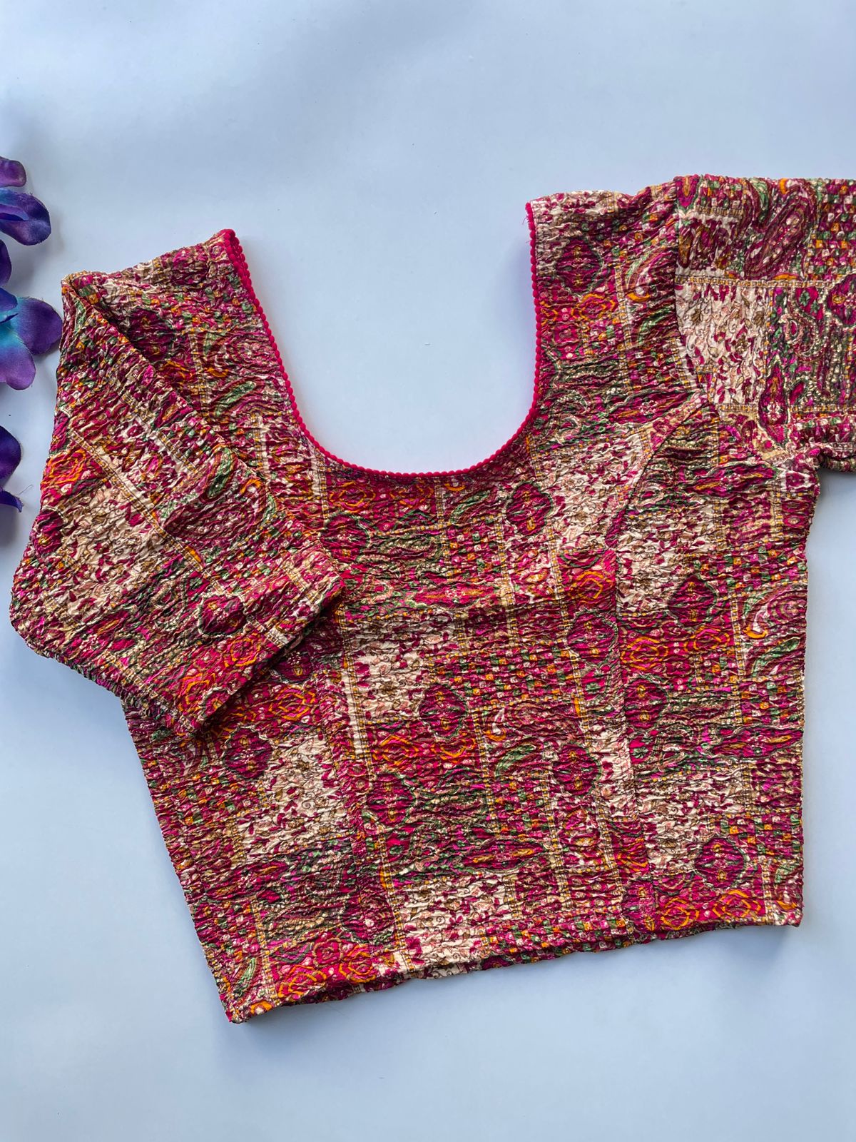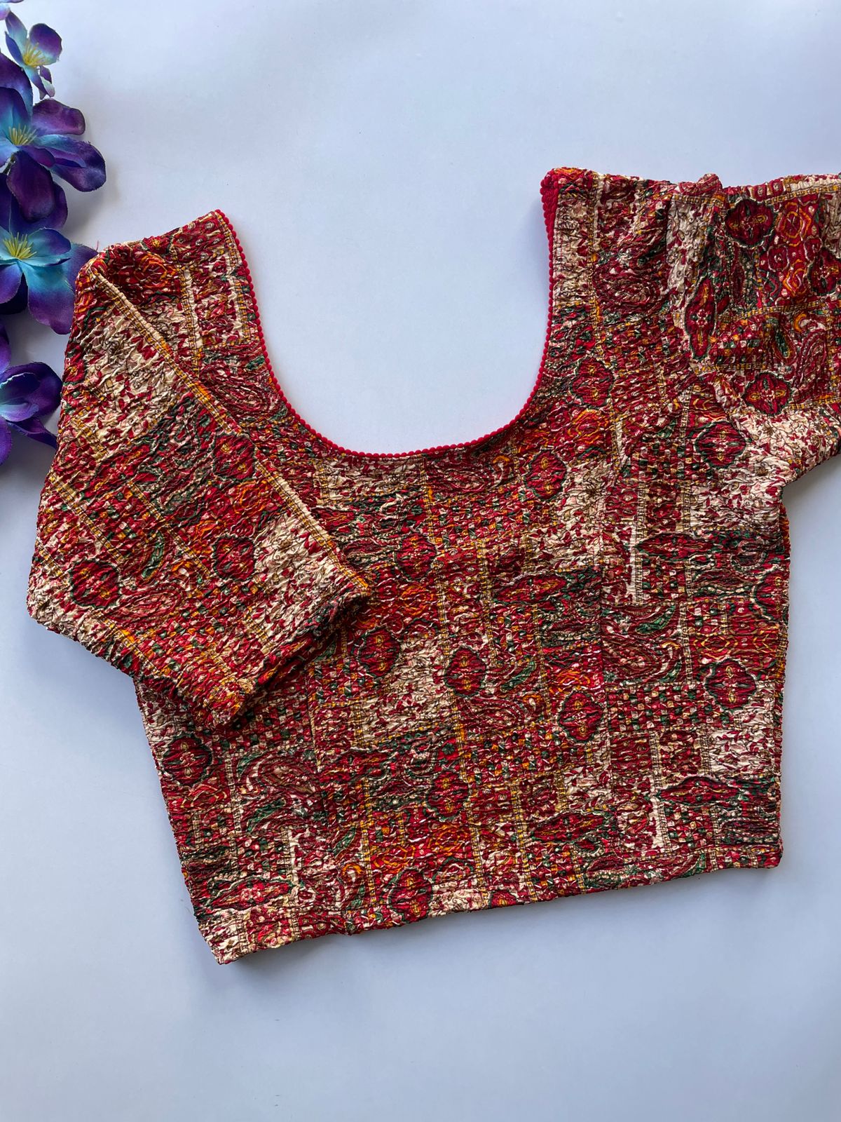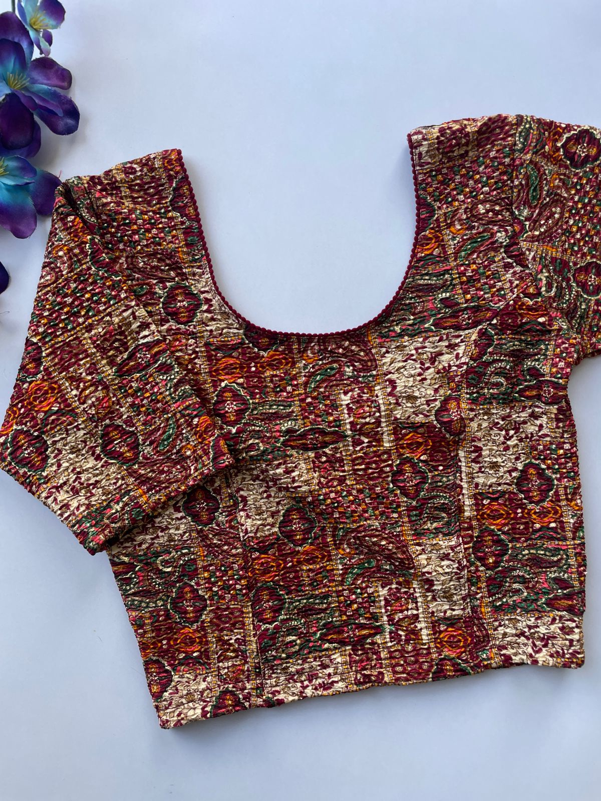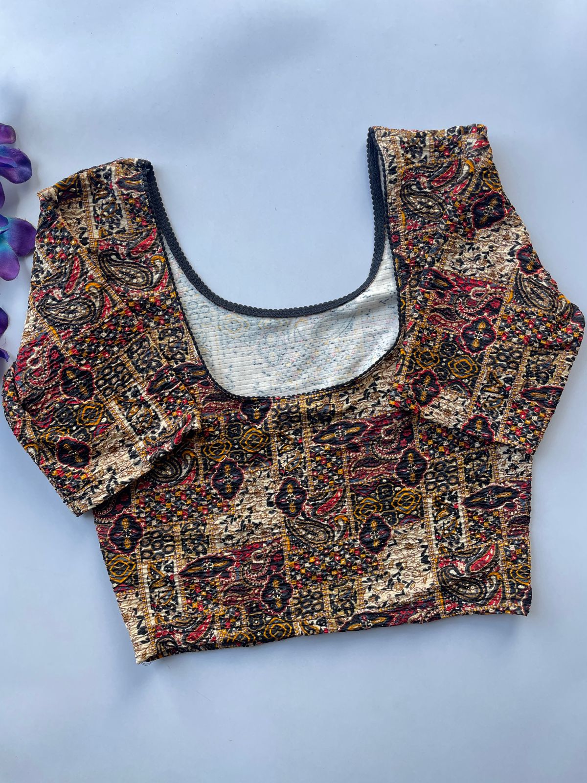 Blouse: STRETCHABL COTTON KALAMKARI PRINT, Slive- 9inch SLIVE ,Back Pattern- ROUND SHAPE