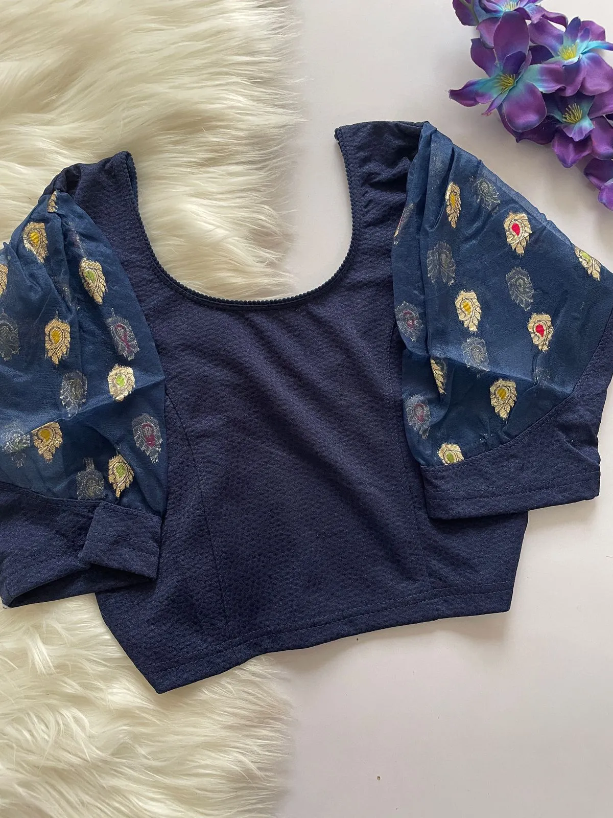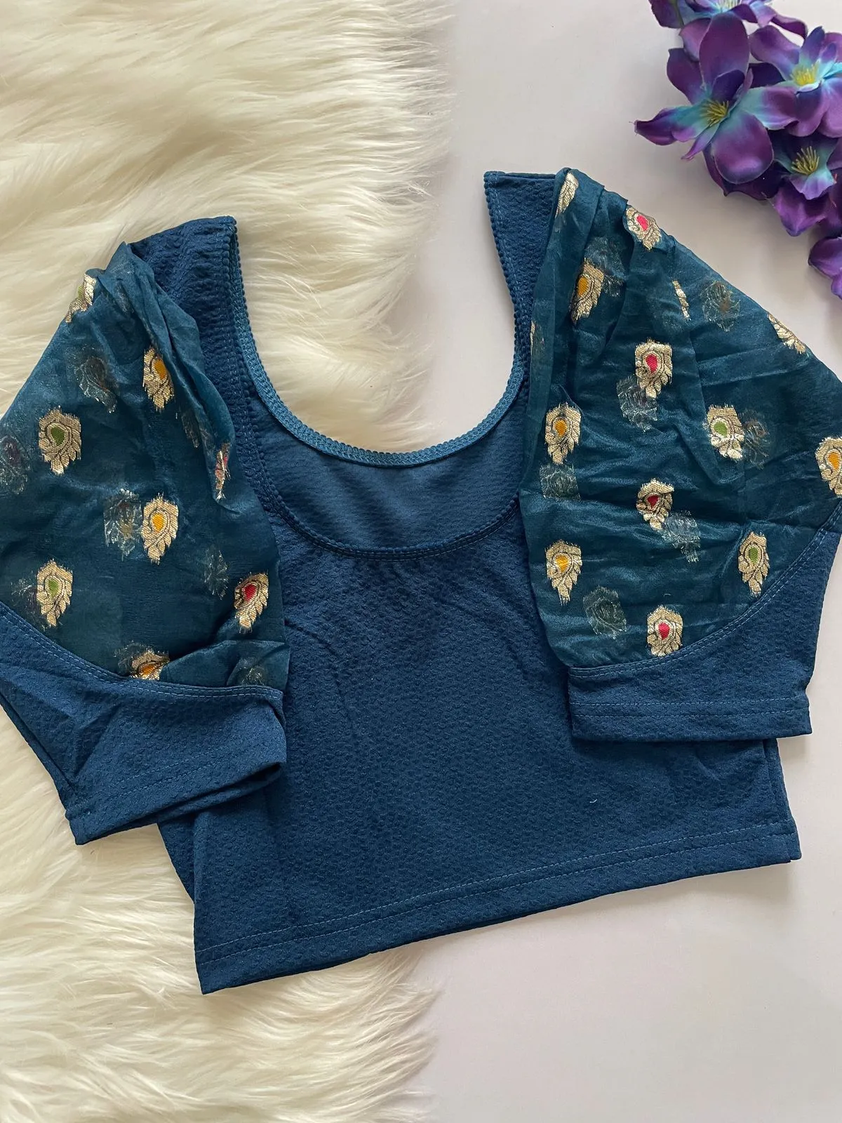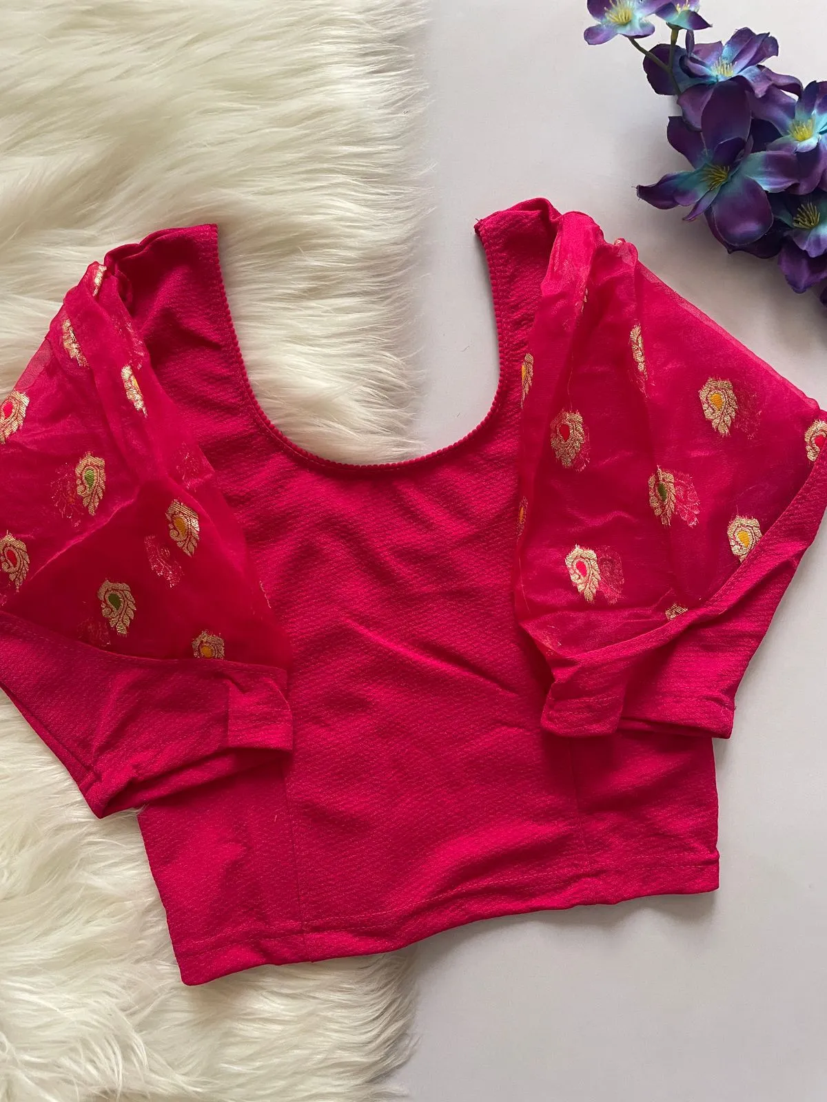 | Blouse | TELESTAR WITH ORGANZA Stretchable Blouse, Slive- Elbow Net Slive, Back Pattern- Simple Round Shape, Neck- Round Neck, Size- FREE SIZE, XL, ( 30 – 40″ UPTO) |