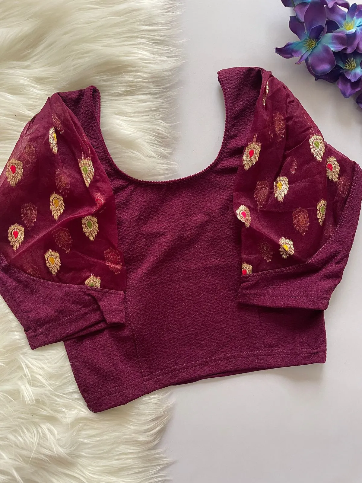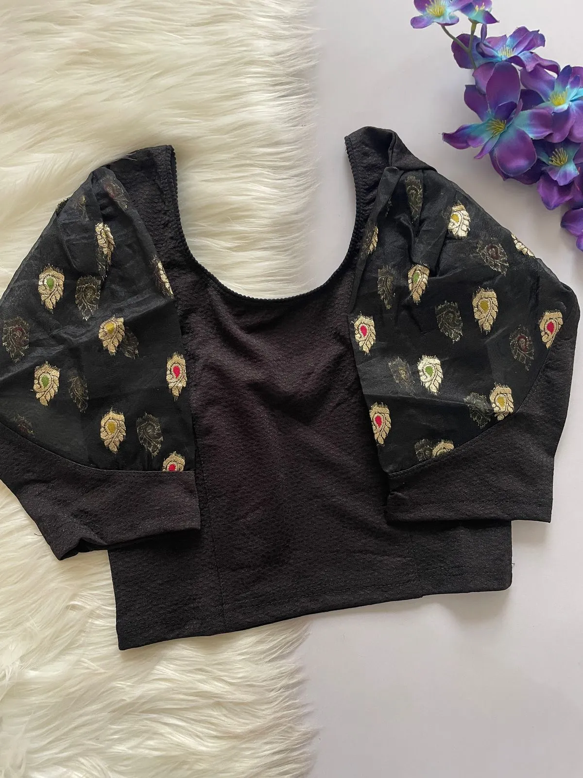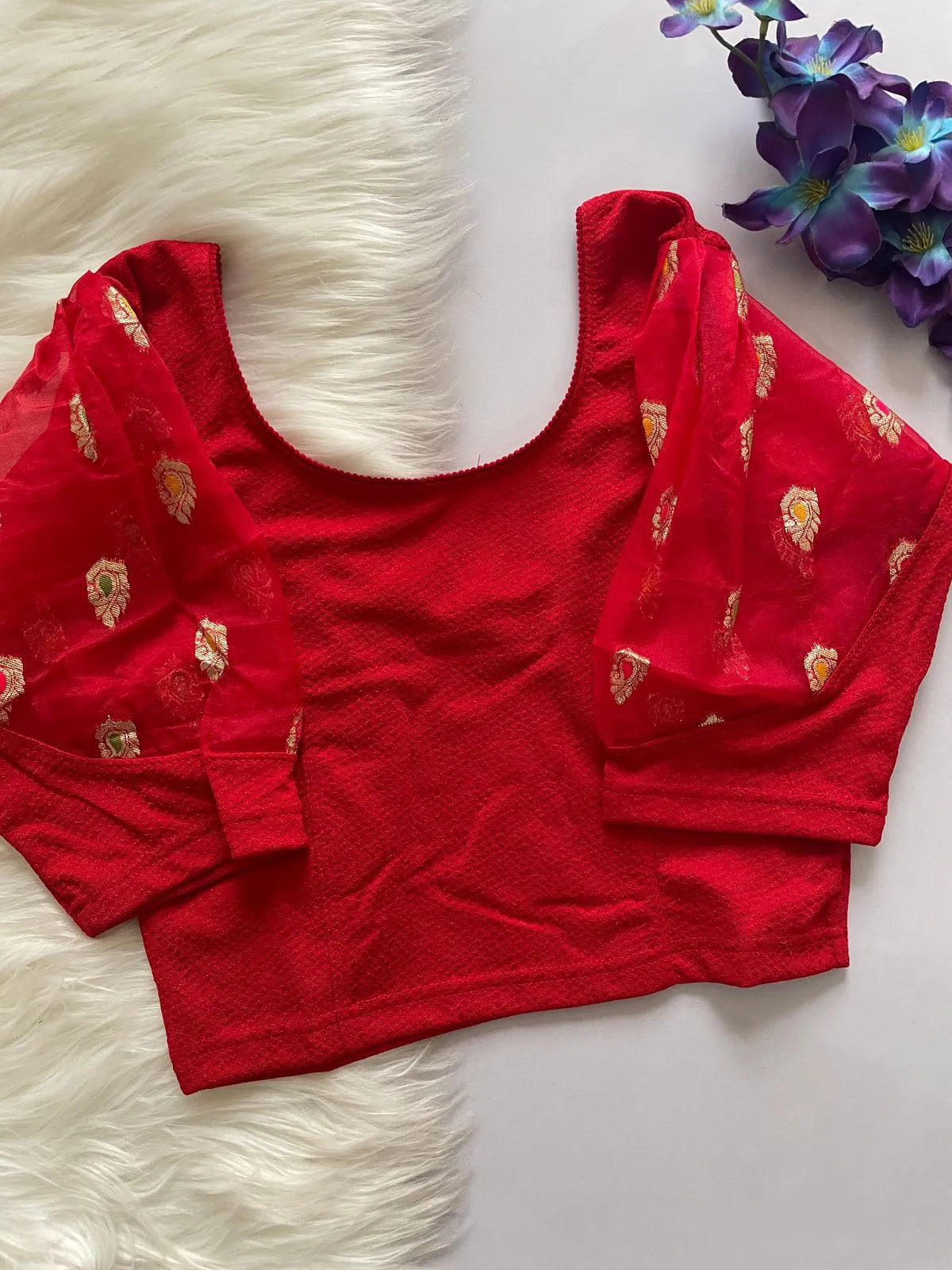 | Blouse | TELESTAR WITH ORGANZA Stretchable Blouse, Slive- Elbow Net Slive, Back Pattern- Simple Round Shape, Neck- Round Neck, Size- FREE SIZE, XL, ( 30 – 40″ UPTO) |