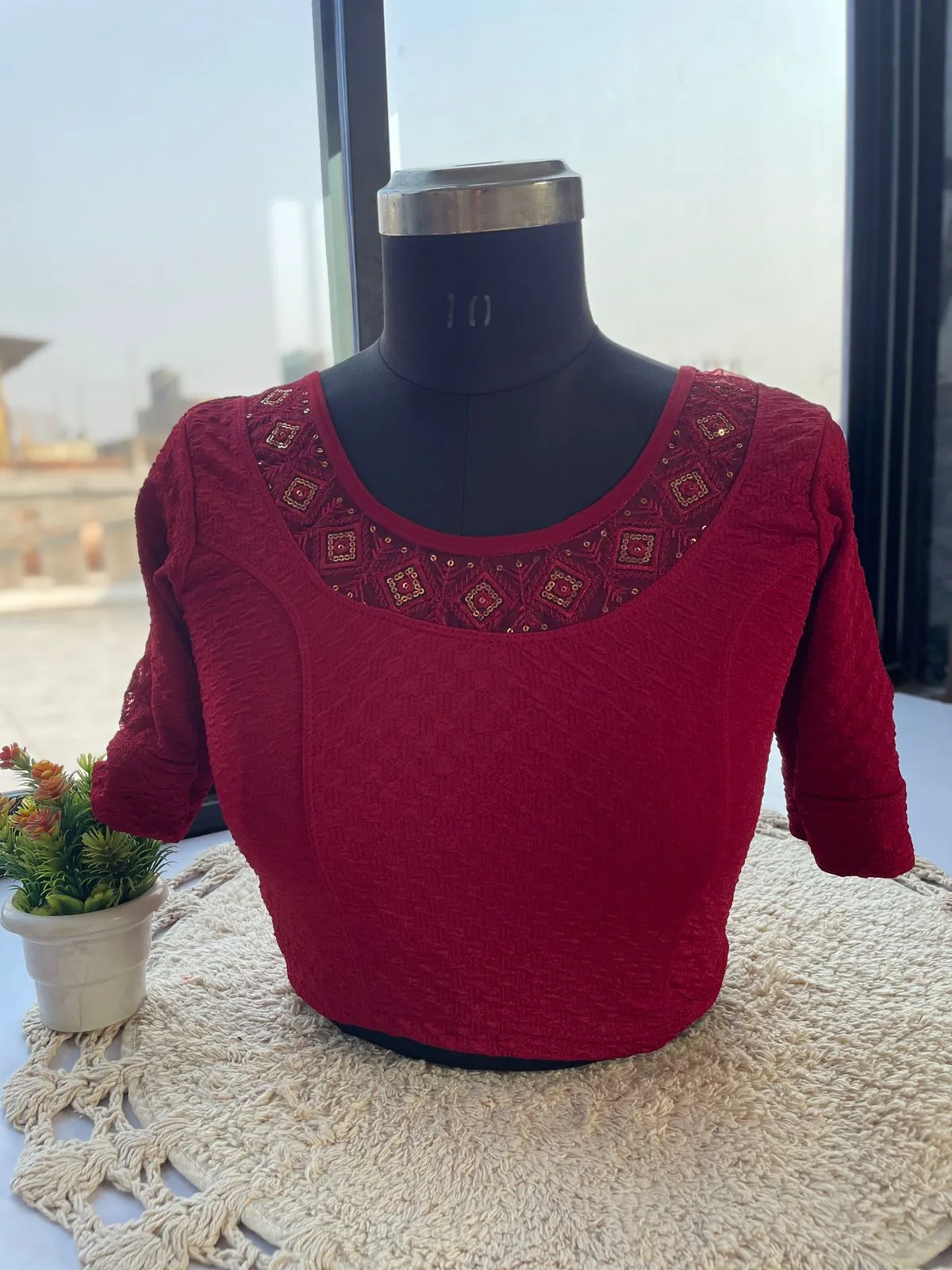| Blouse | STRETCHABLE NETWORK, SLEEVE:- 9inch SLEEVE WITH EMBROIDERY NET, Back Pattern:- HIGH NECK WITH EMBROIDERY NET, Size- XL 40 size |