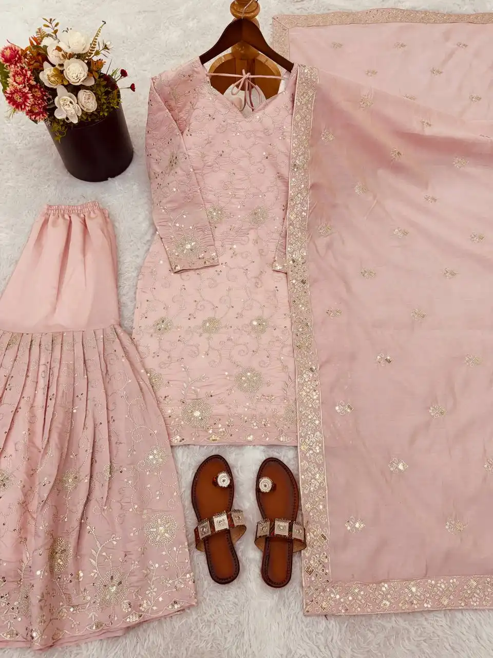 | Bottom: | Heavy simar silk With Embroidery Sequence work with Elastic Sharara Length : 40-41 Inch |