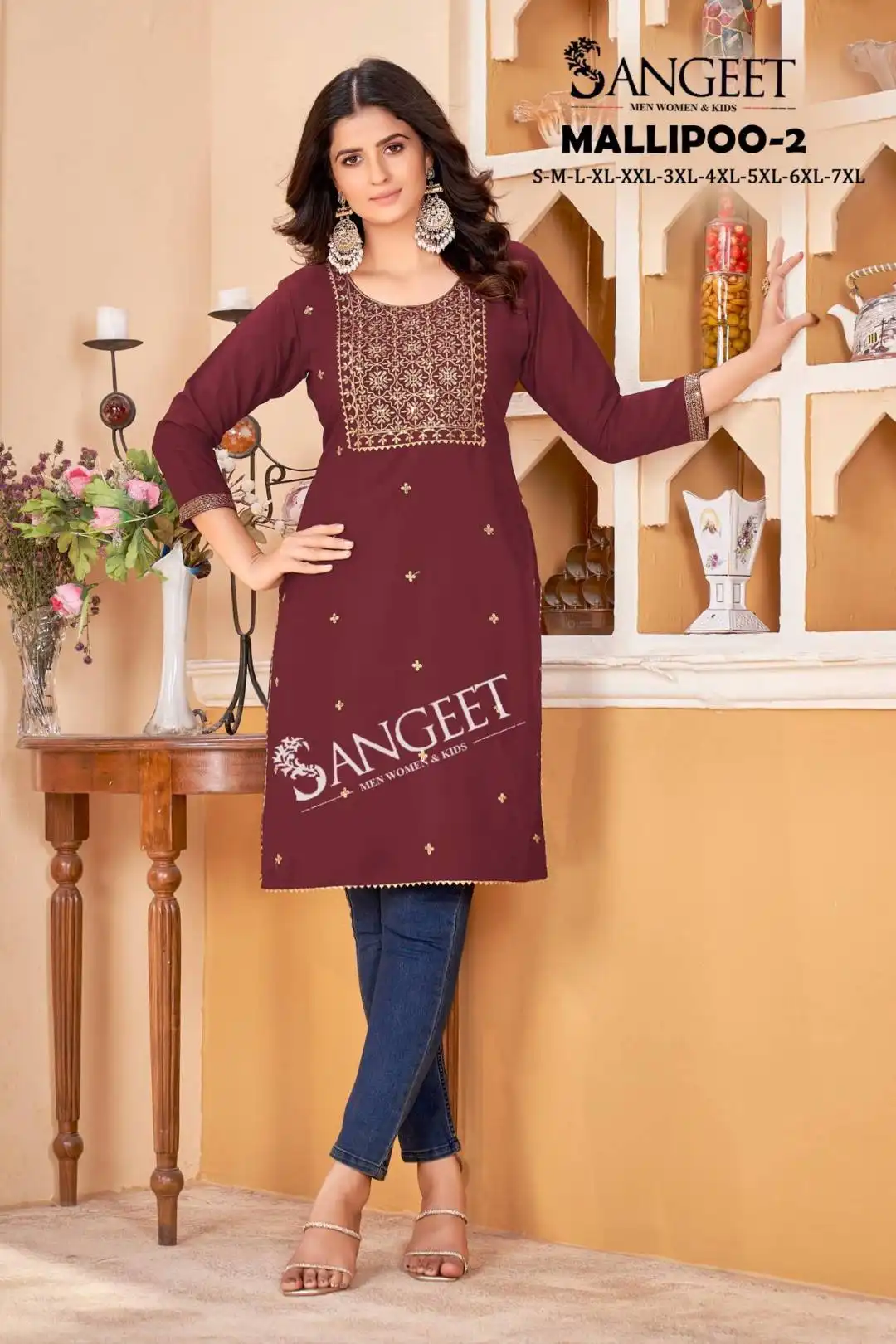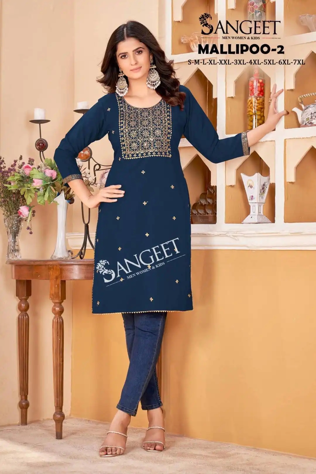 Catalog: | Sangeet Mallipoo Vol 2 Malai Rayon Short Kurti Collection 2025 |