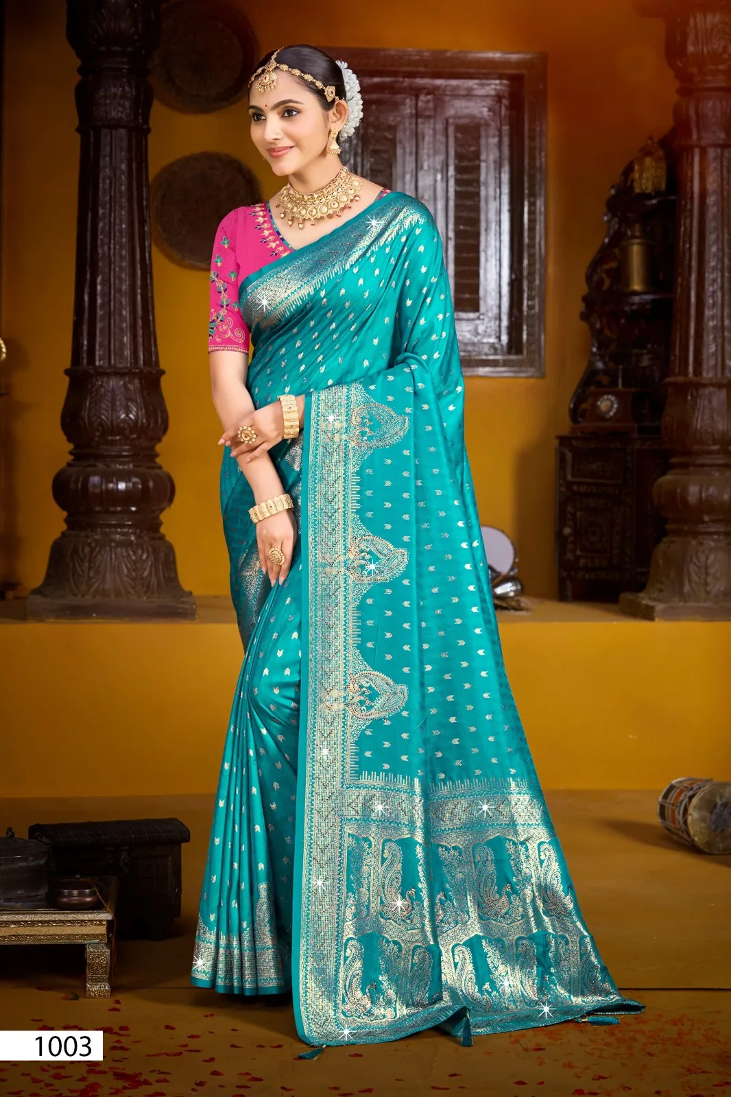 | Product Name | Saroj Gunjan Silk Saroski Vol 3 Silk Embroidery Saree Collection |