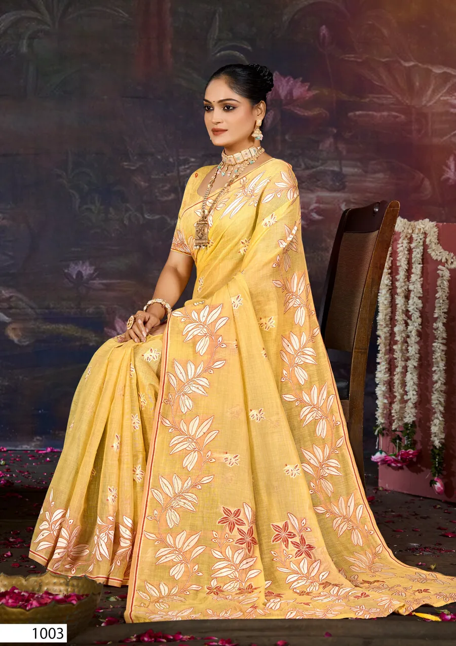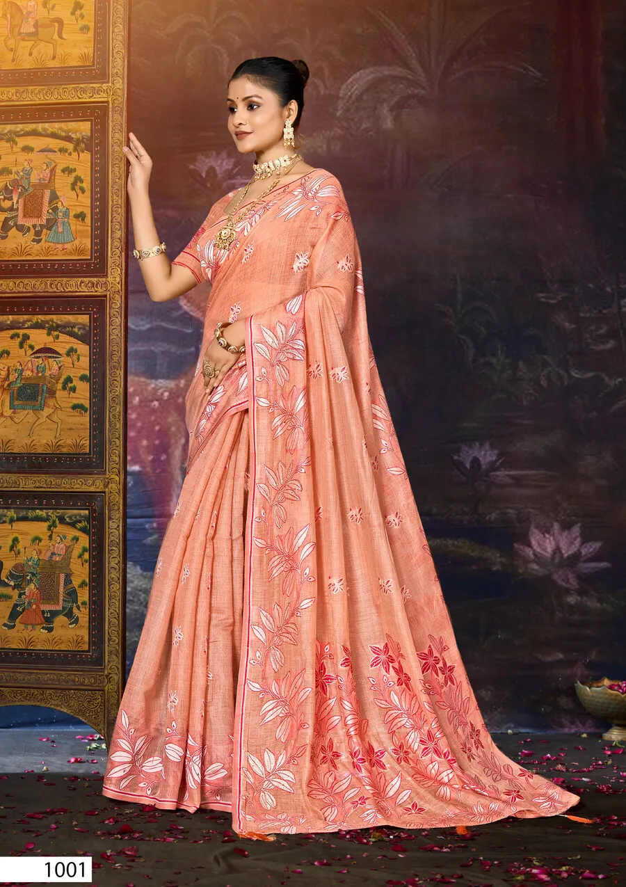 Saroj Saanjh Linen Saroski Vol 2 Linen with Saroski Worked Fancy Saree Collection Sarees