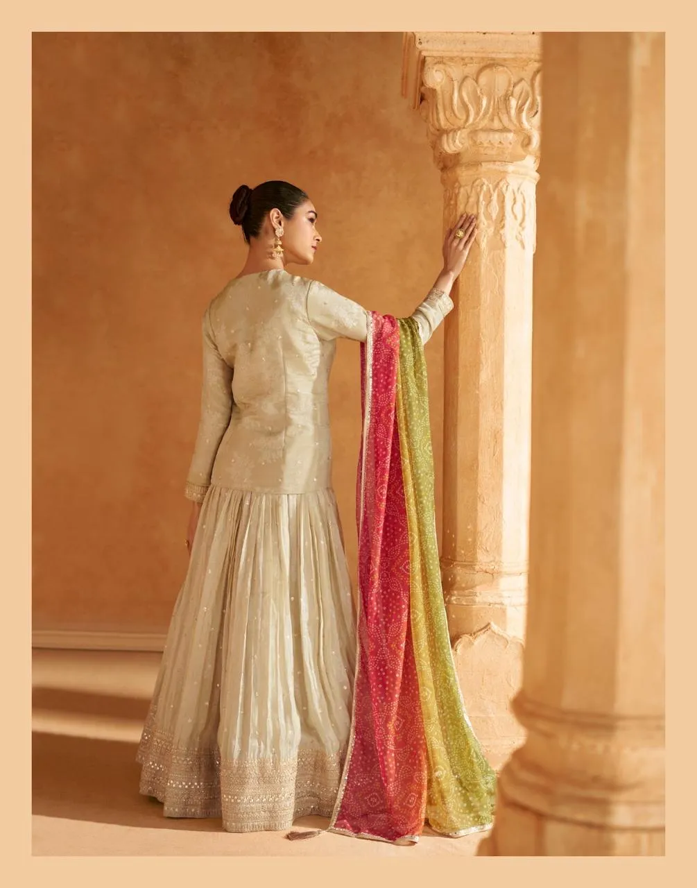 FABRIC – PURE SIMAR VISCOS JACQUARD SILK ( FRONT AND BACK EMBROIDERED WITH CANCAN )