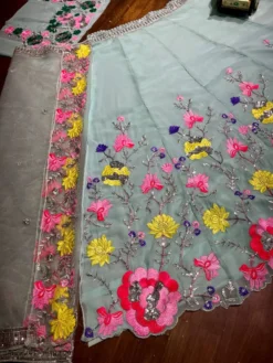 Dupatta: Butterfly net ,thread with Sequnce four side cut work lace broder