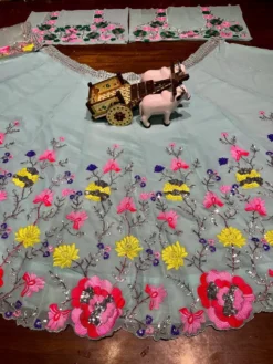Lehenga: Faux Georgette ,Thread with Sequence ,Up to 44 ,Semi-Stitch ,3.5 meter and cancan with canvas