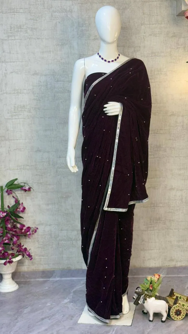 Product Name SBD 1798 Wine Velvet Saree Festive Saree Below 1500