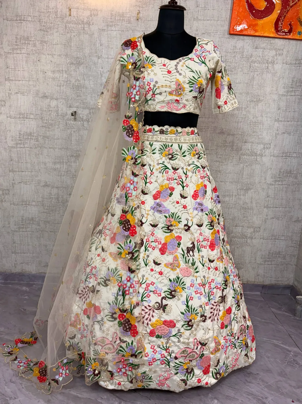 | Lehenga | Premium Quality Masti Silk, Work- Embroidery Sequins Work with Can-Can & Canvas Patta, Flare- 4 Meter Flared, Type- Semi-Stitched, Length- 42, Size- Up to 44 |