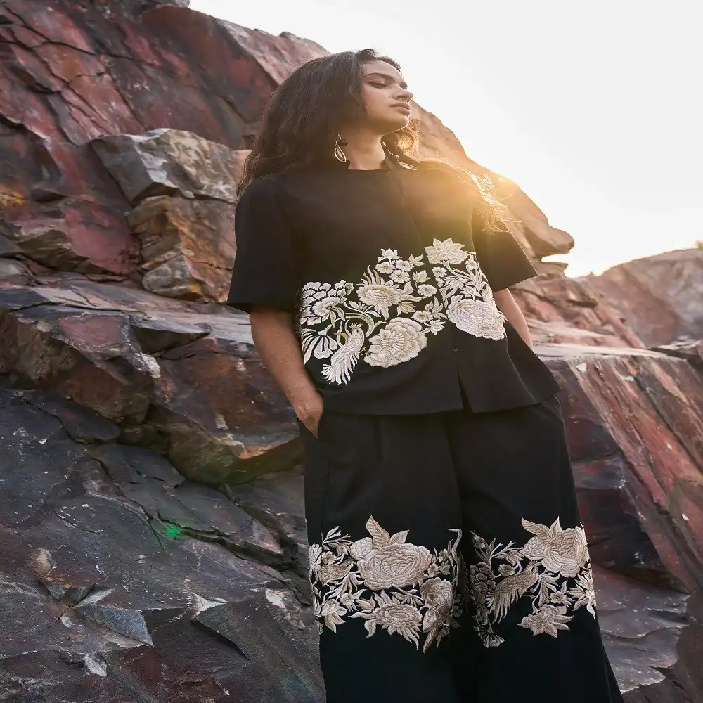 Catalog: | SCT 1011 Black Khadi Co Ord Set With Embroidery |