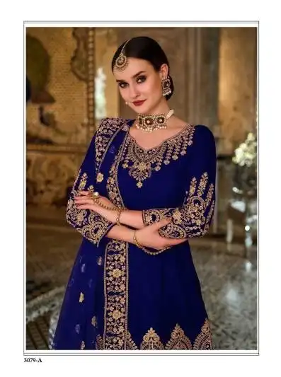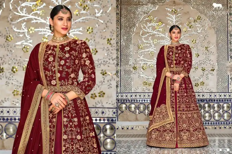 Gown: | D No 3078 – 9000 Velvet Front Side Work D No 3079 (3 Colors) – 9000 Velvet Front And Back Side Work Inner : Santoon |