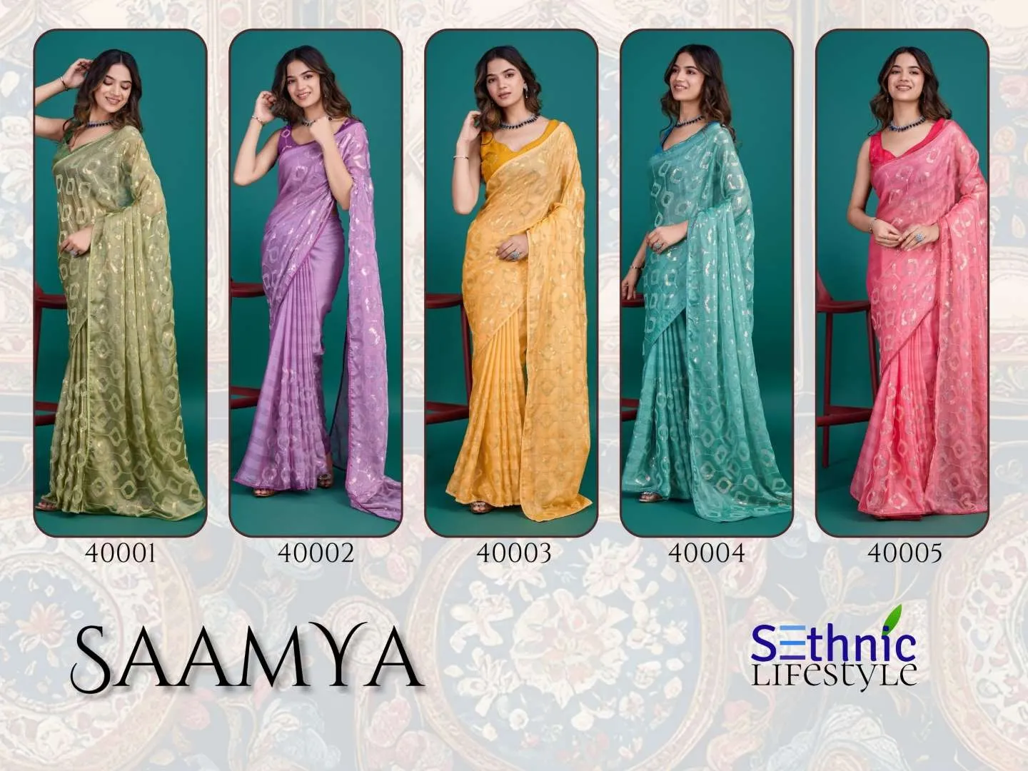 Sethnic Saamya Glass Zari Sequins Embroidery Saree Wholesale